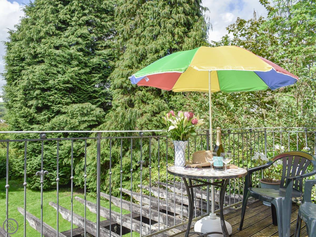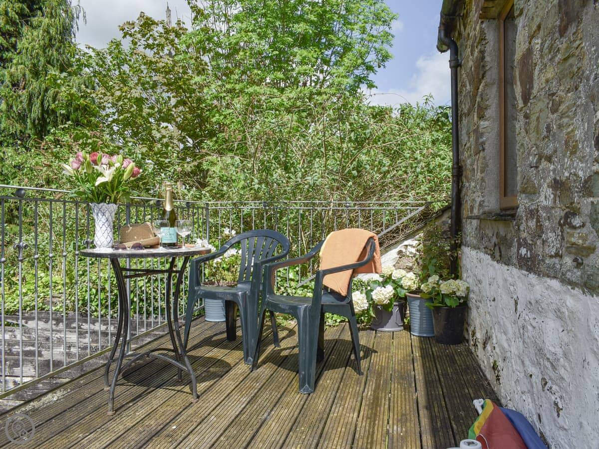 Moorside is an apartment for two people, on the first floor of a stable block on our estate near Lostwithiel. You get your own entrance up a flight of granite steps. They're solid, but they are proper Cornish steps, so take your time.