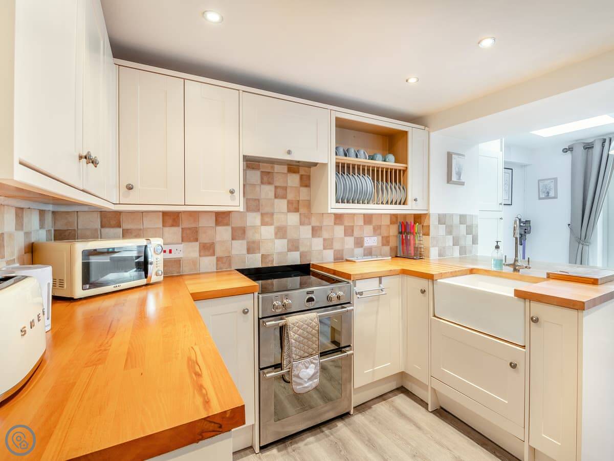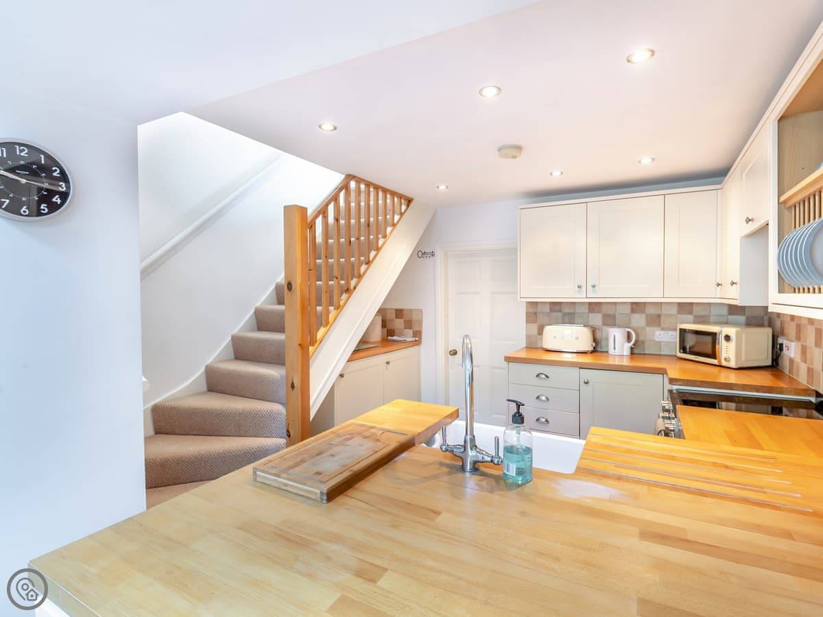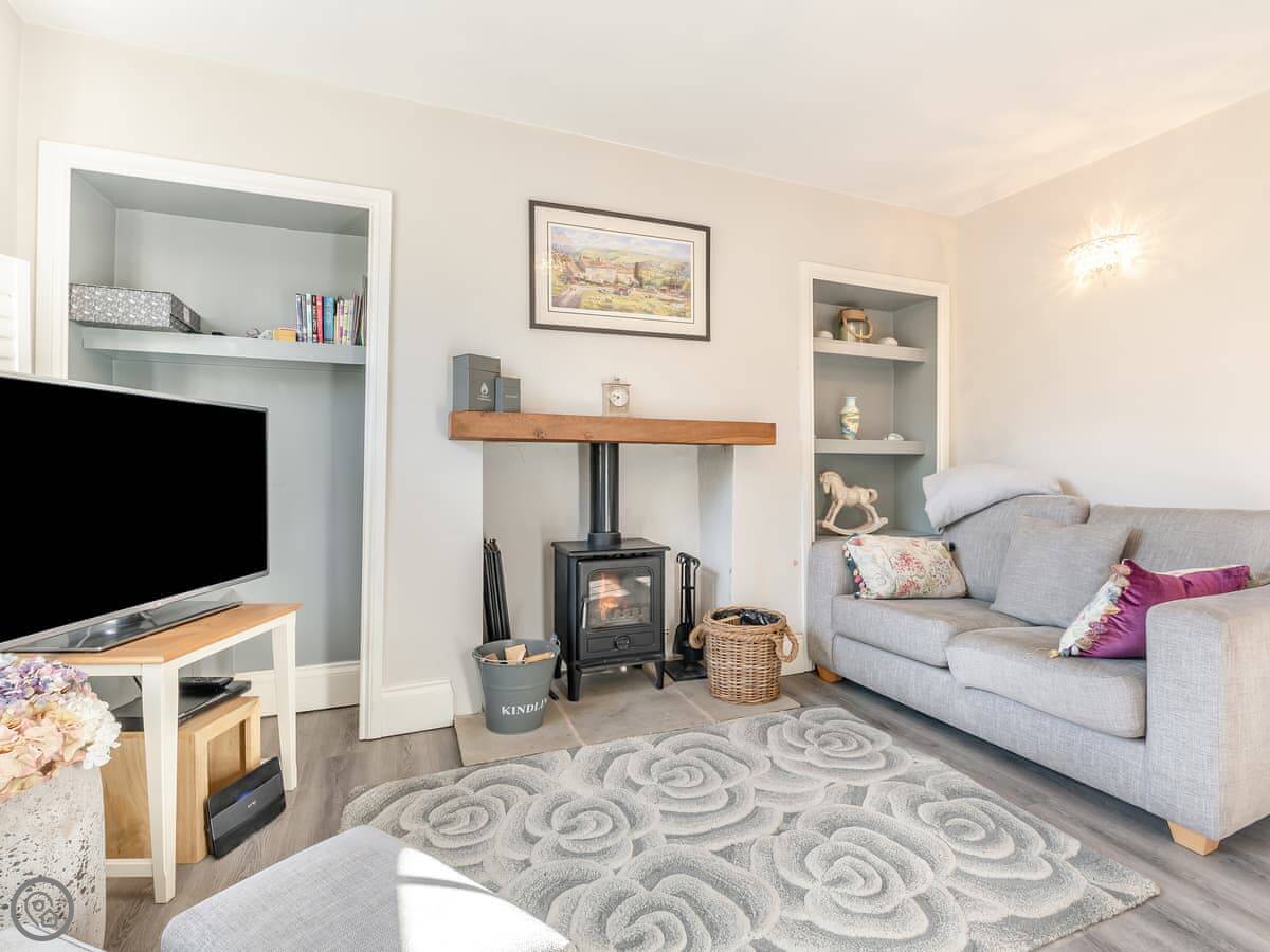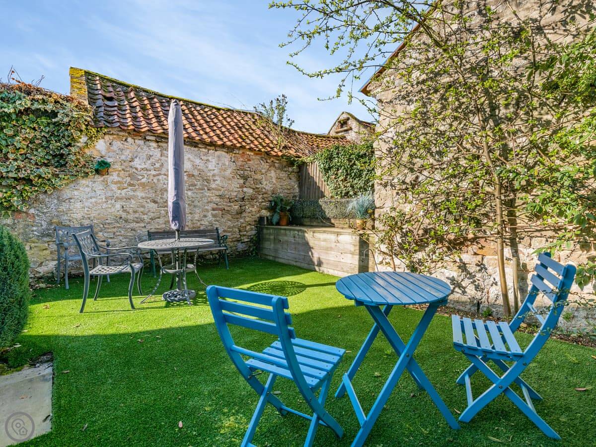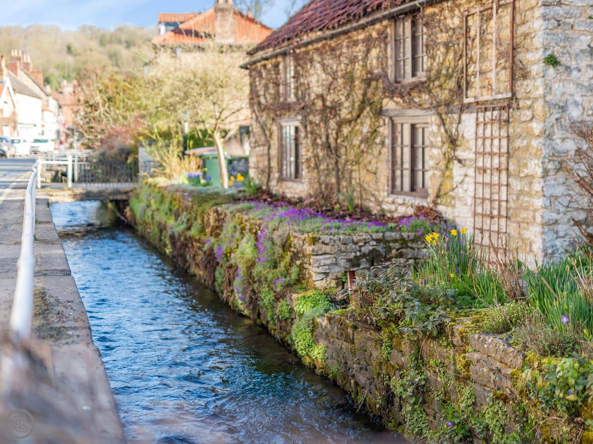 The village is very pretty, with a stream and a duck pond. The local shop, a couple of cafes, and the village green are a two minute walk away. There's a pub just down the road. The garden at the back is shared with the cottage next door. It's enclosed.