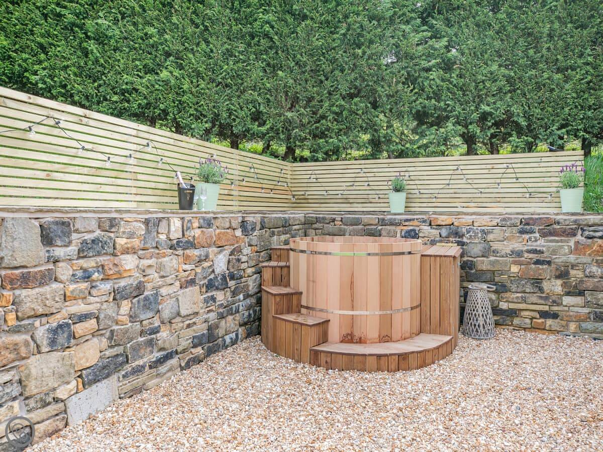 There's a hot tub on the patio. The views from there are good, looking out towards the hills.