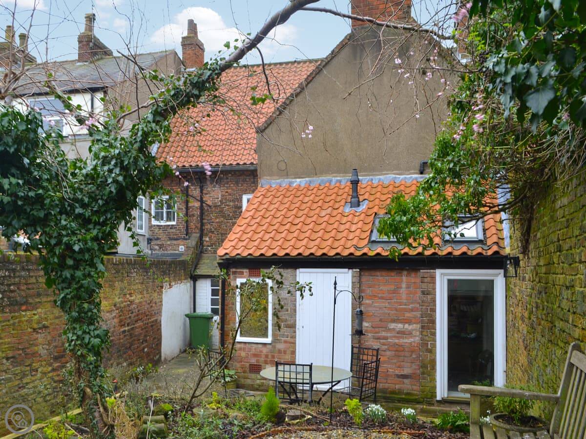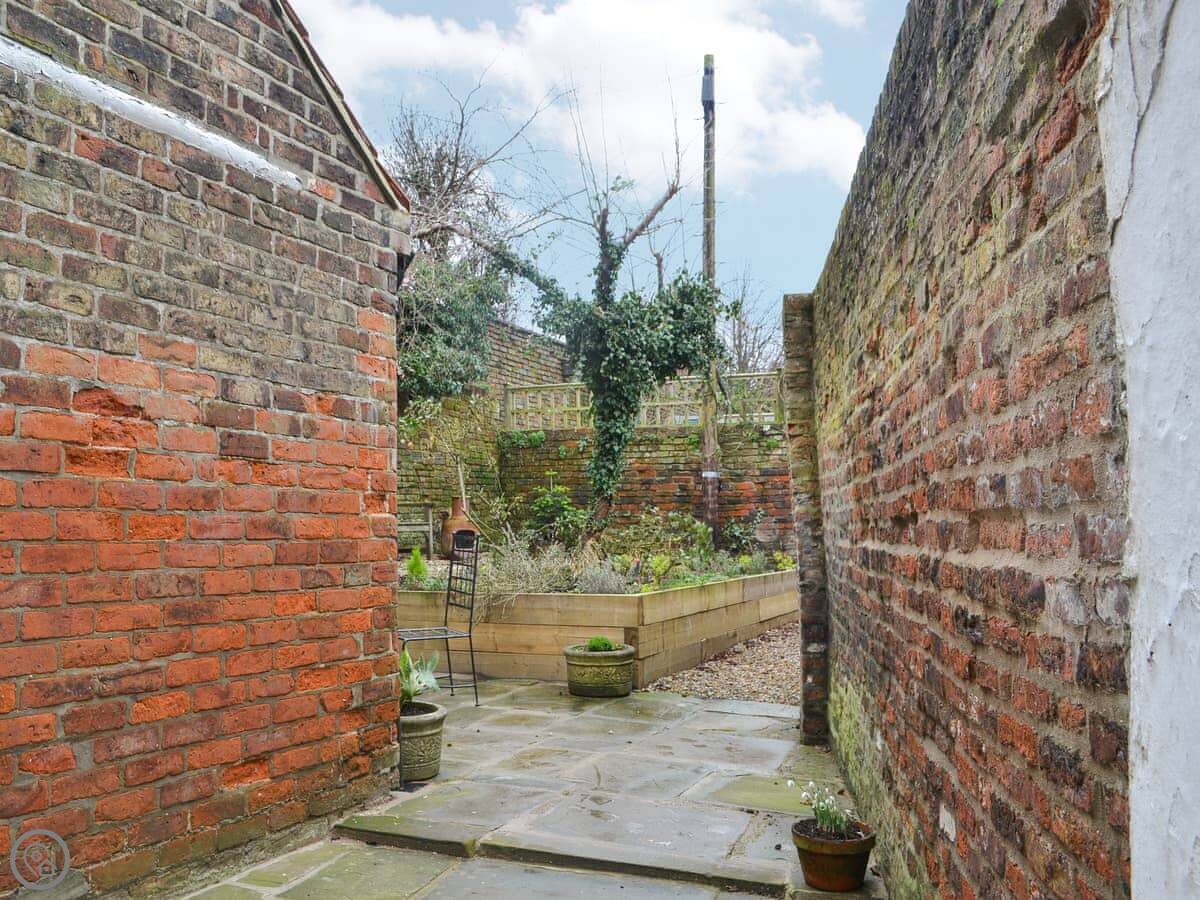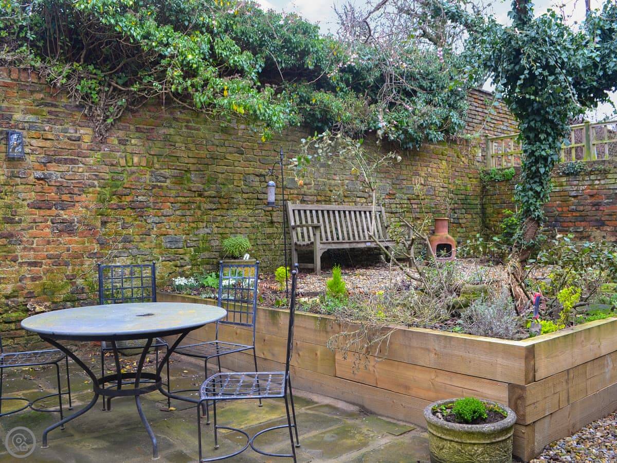 Outside, there's an enclosed courtyard at the back with seating. It's a sun trap in the morning.