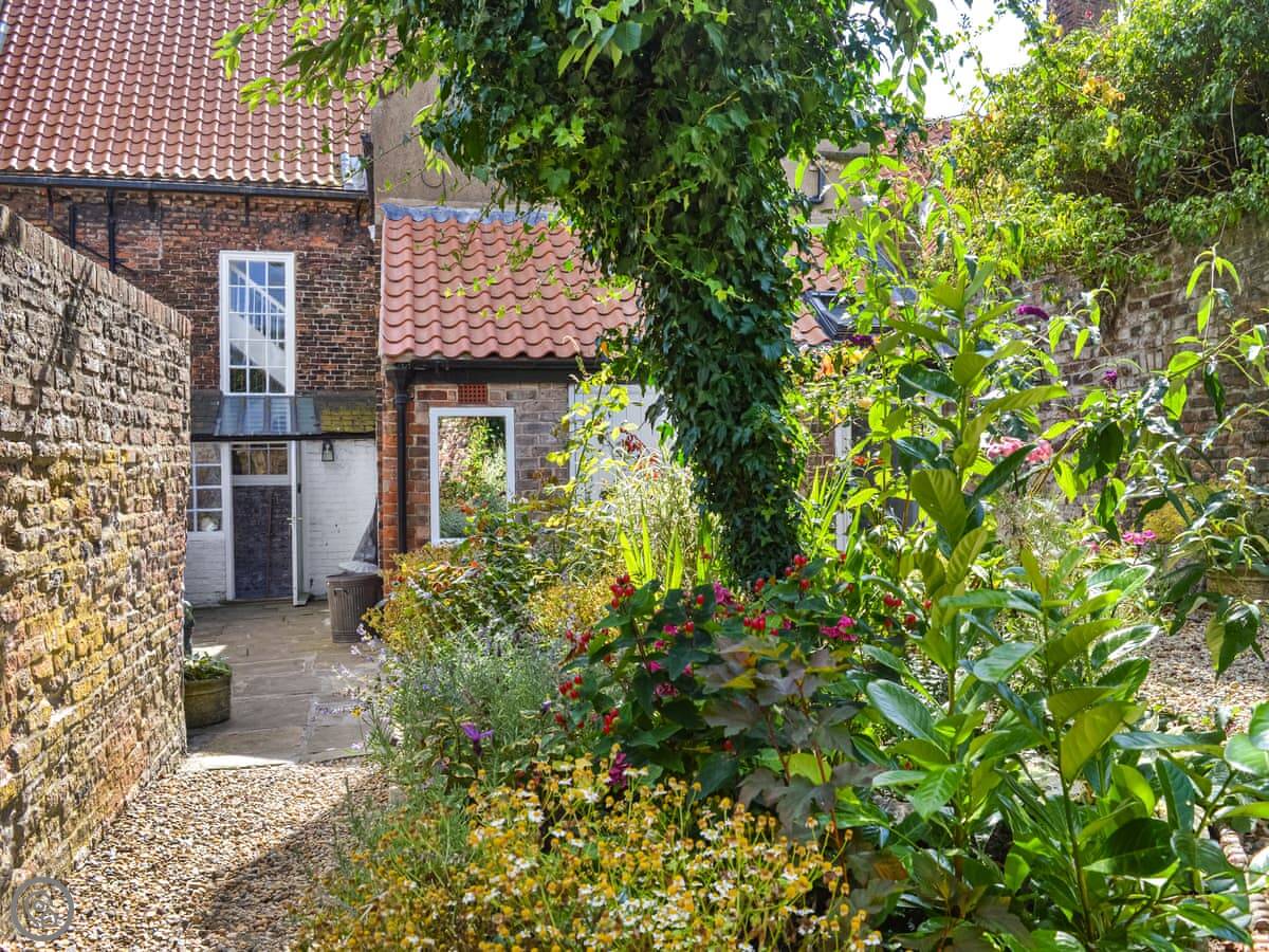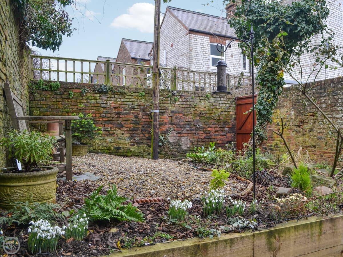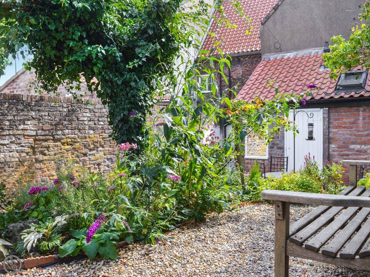 Outside, there's an enclosed courtyard at the back with seating. It's a sun trap in the morning.