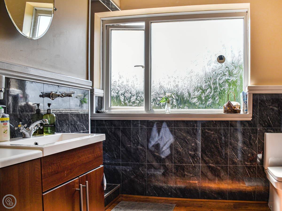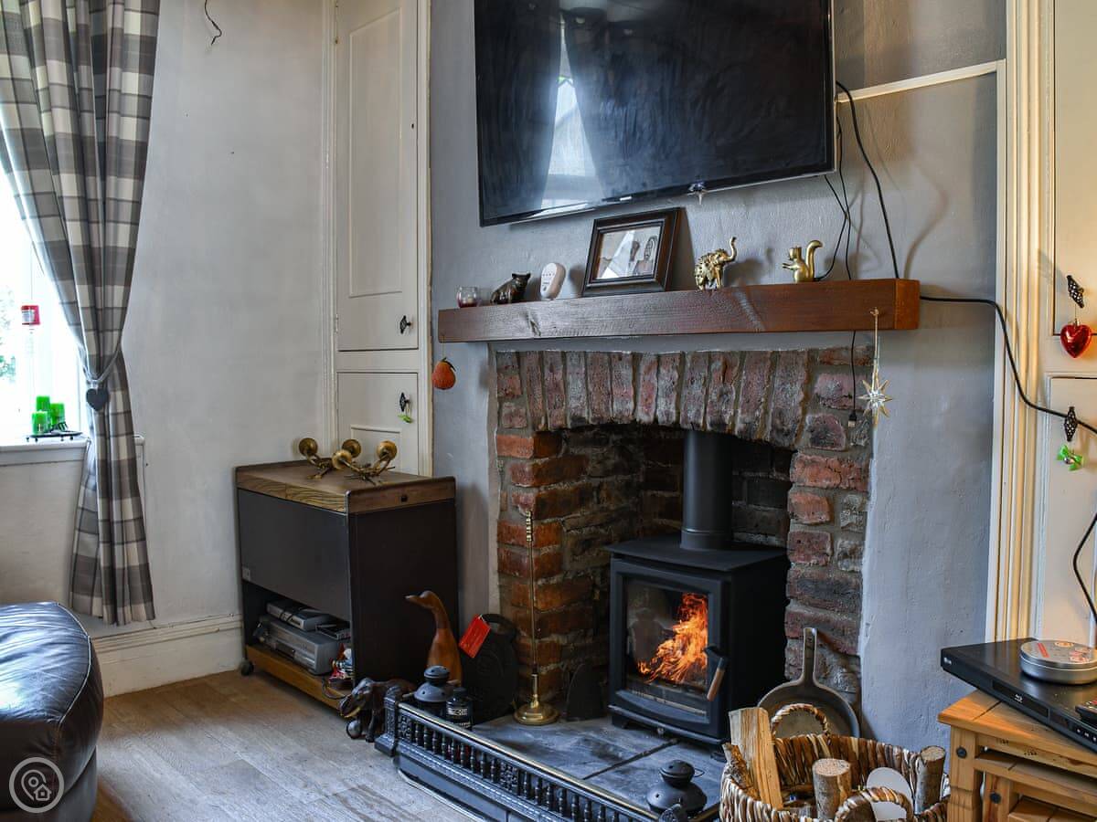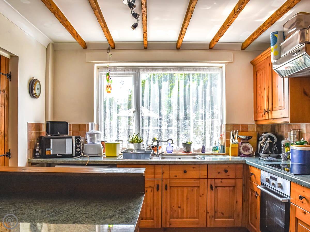 The main thing is the wood burner in the living room. It's really effective, so the place gets properly warm. The kitchen has what you need. There's a separate utility room with the washing machine, which is handy.