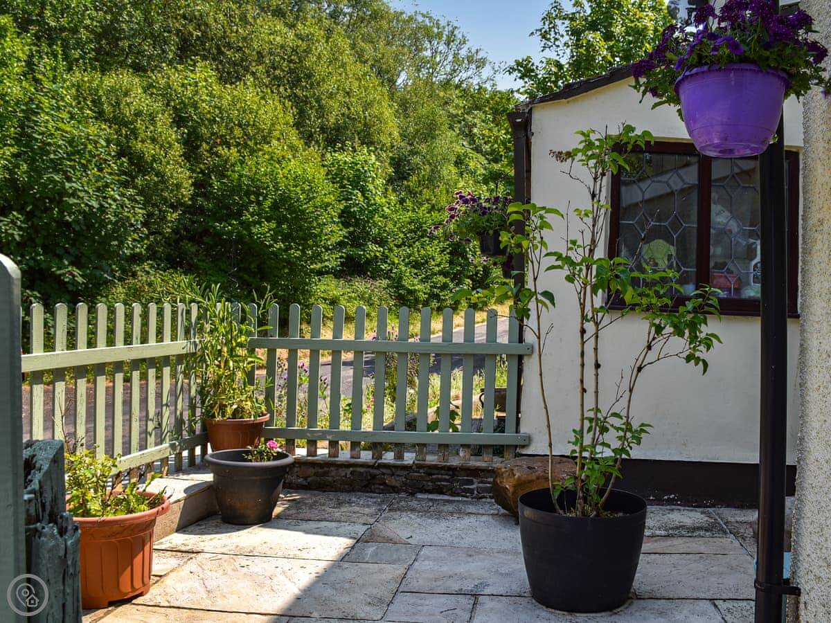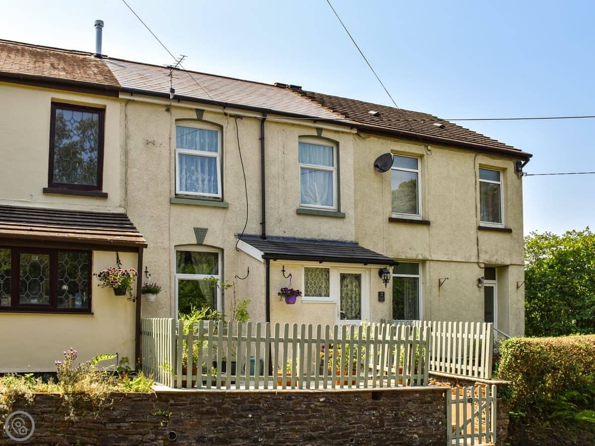 Hunter's Lodge is in Cynheidre, Carmarthenshire. It's a stone terrace house, one of three in a row. You're in the countryside here, with fields right outside.