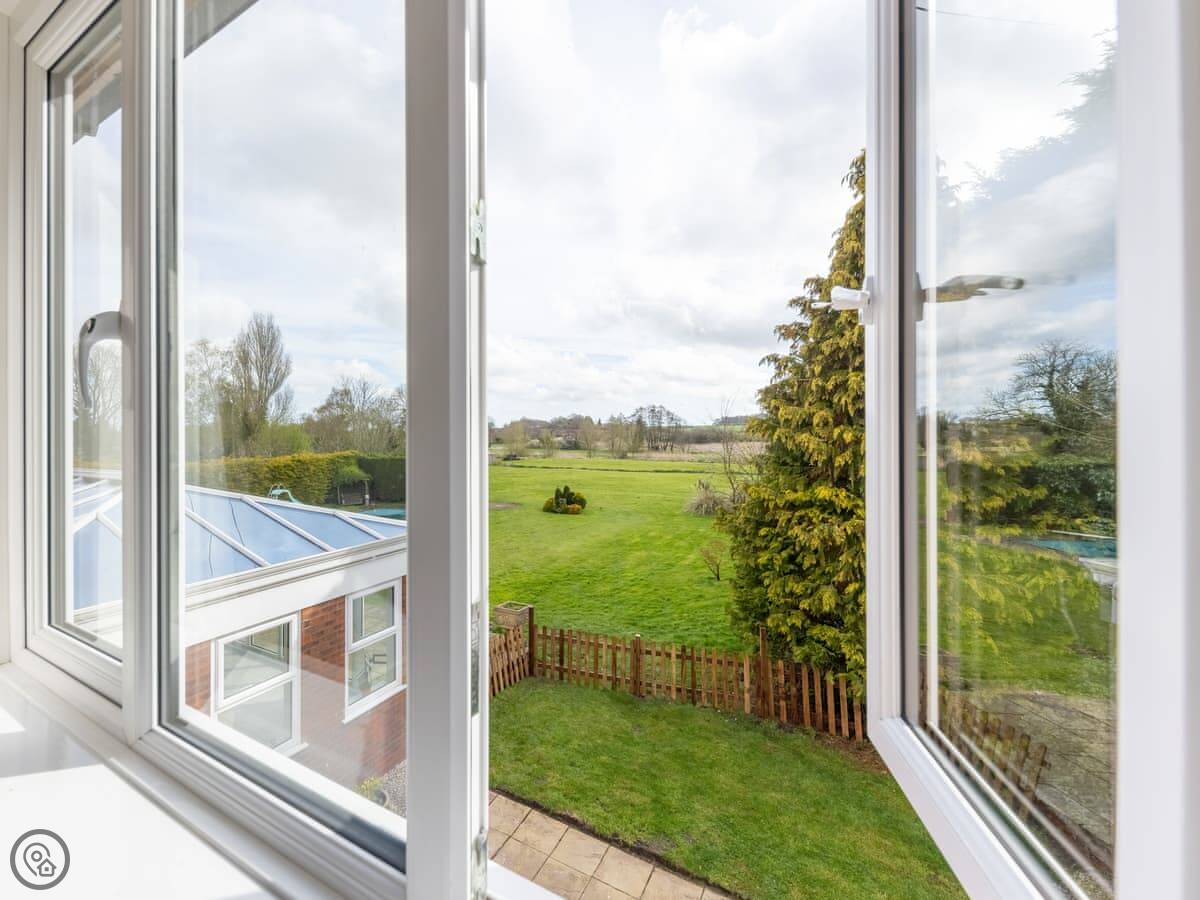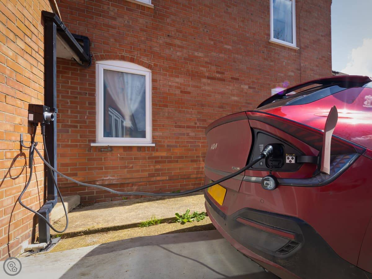 Outside, there's a private garden with a patio, a BBQ, and a view over the owners' fields to the river. It's quiet. Parking is right there, and there's an electric vehicle charger.