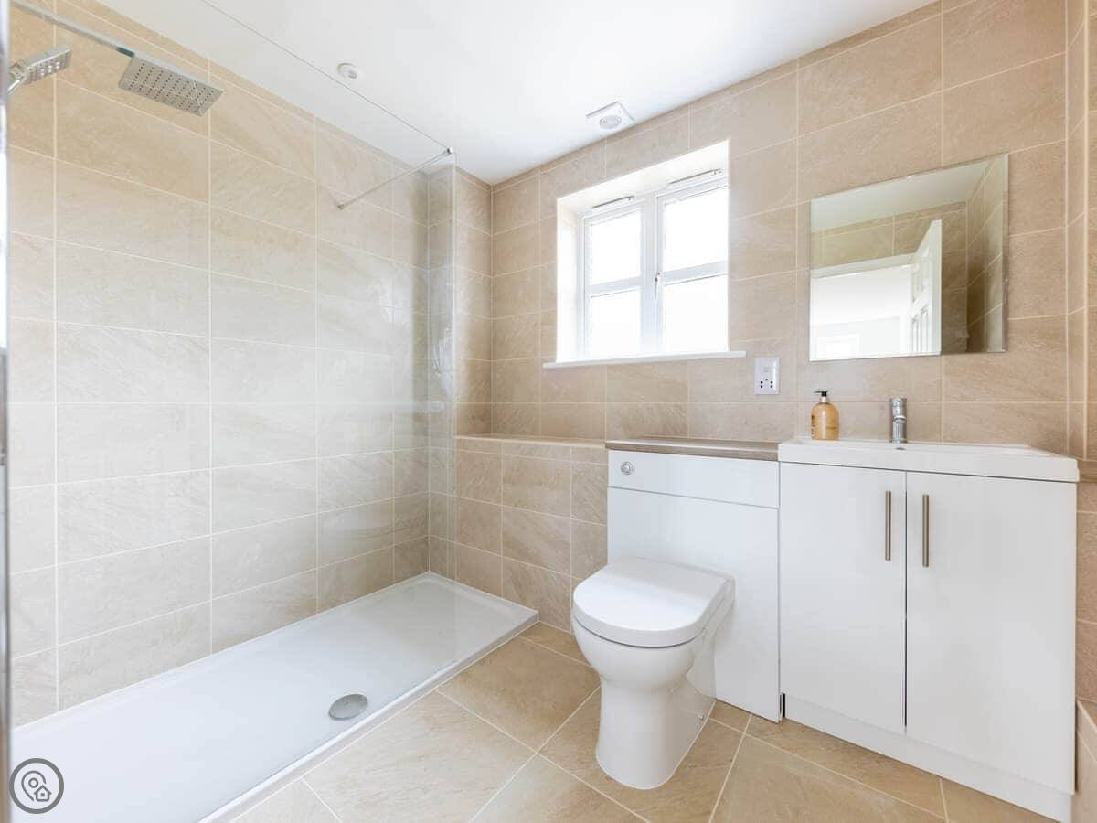 It's a bungalow, so everything is on one level. It sleeps four, two bedrooms, both doubles. One bathroom with a good shower. It has a 4 Star rating. It's modern and clean, you can tell it was built to be lived in.