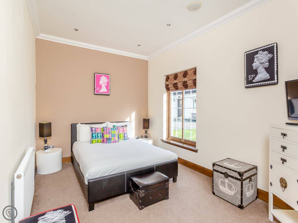 The decor is… memorable. There's a room themed around the Queen on stamps. Another one is like a James Bond thing. And there's a large lamp with figures on it. It's all in good nick, just very specific. A lot of wedding parties book it for the night before.