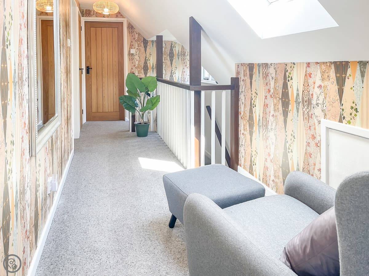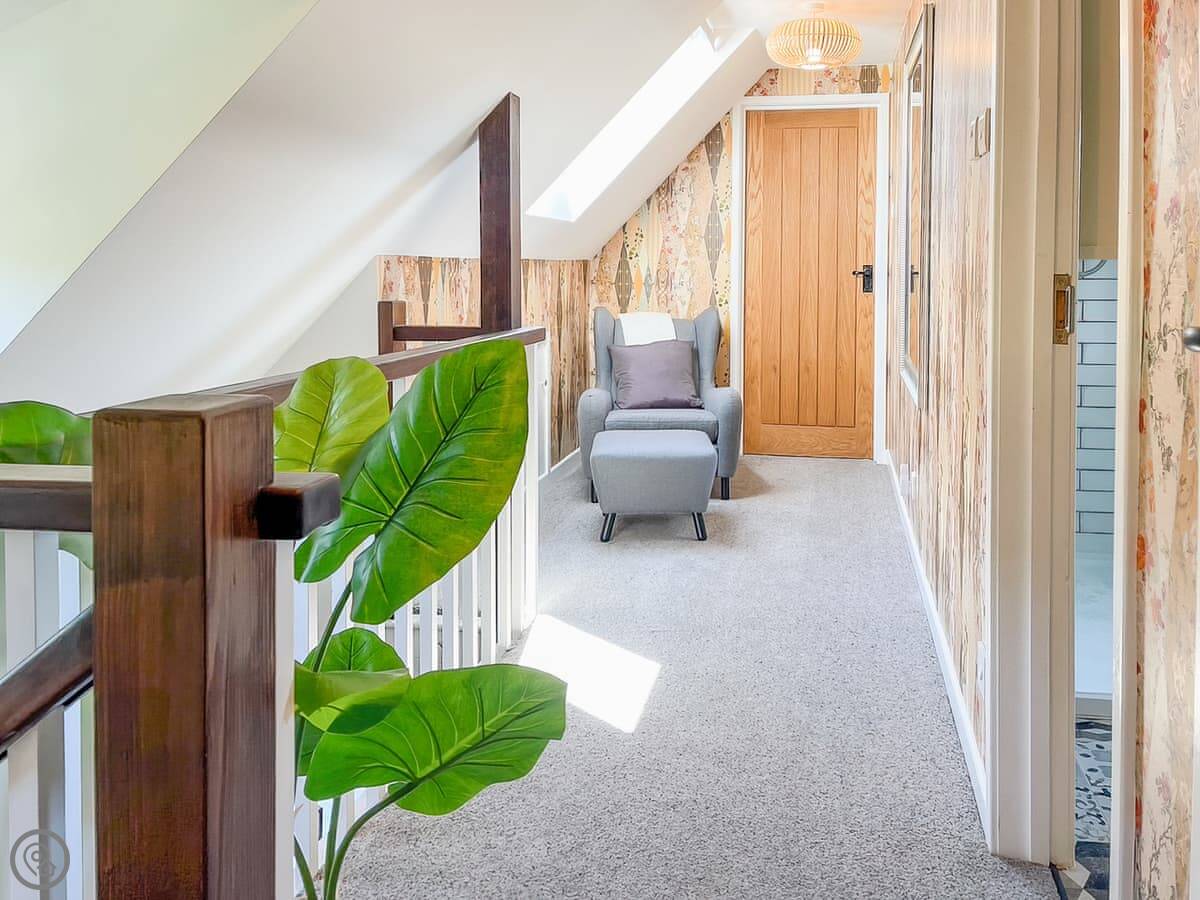 You'll get ducks from the stream coming up, especially if they think there's food. The stairs are typical cottage stairs, so they're a bit winding.