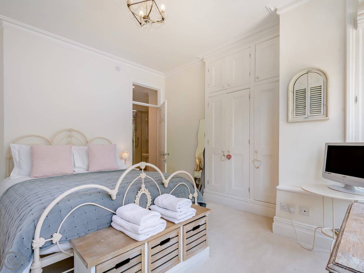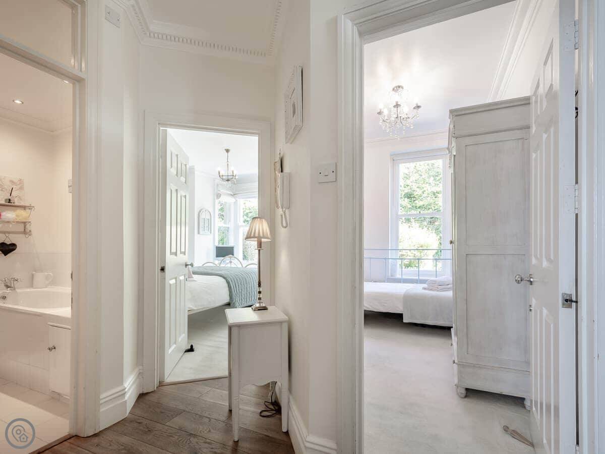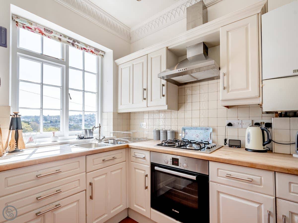 This light and airy ground floor apartment boasts incredible views from the private balcony, the property is furnished to a high standard, you will find everything you need for leisure and business. All on one level, Wood Hill View sleeps up to three guests, there is a master bedroom with double bed and en-suite shower and a single bedroom and family bathroom. The open plan living space consists of well-equipped kitchen, a comfortable living area with Smart TV and gas fire, dining area and doors that open onto the balcony with outdoor seating.