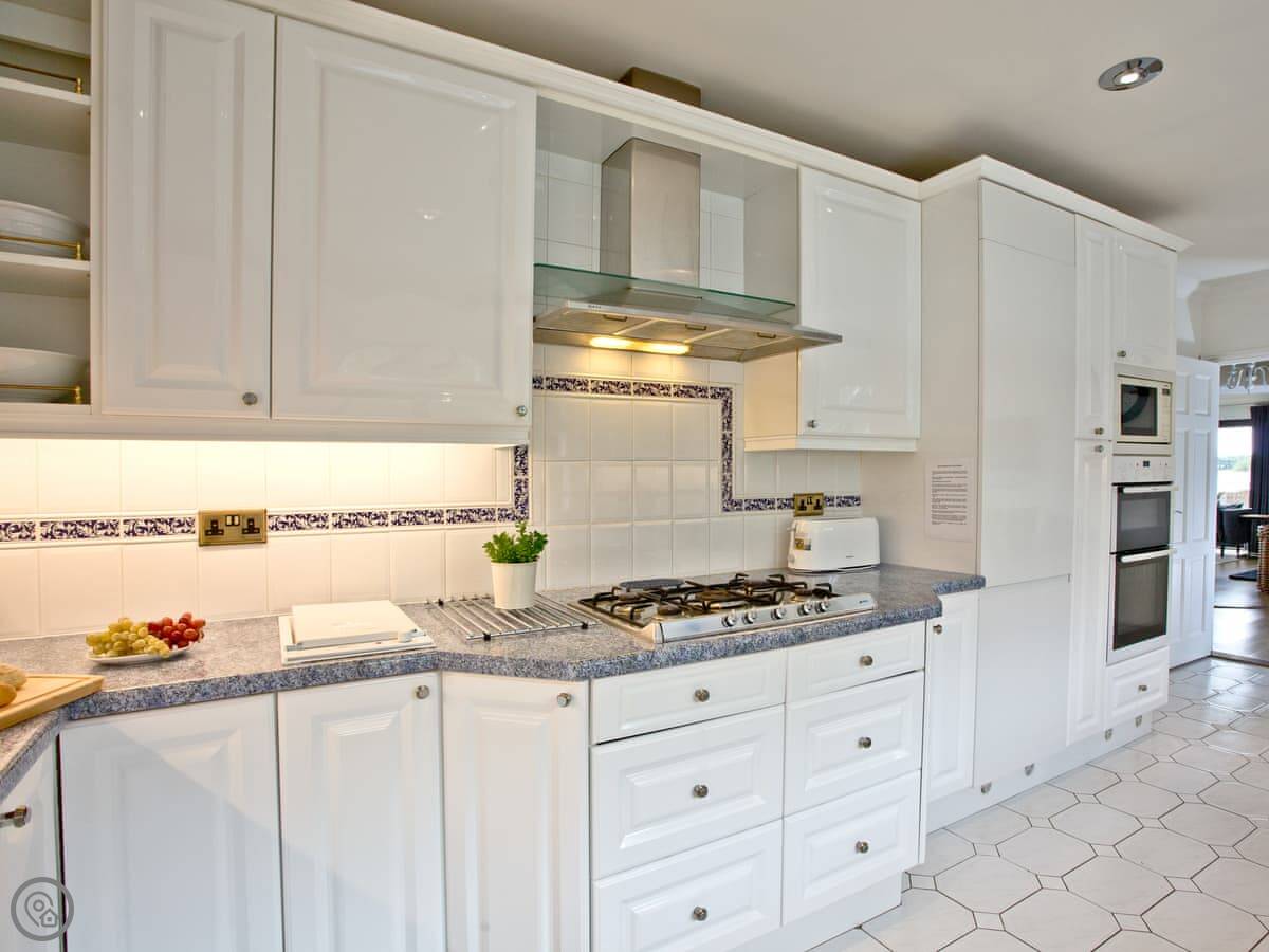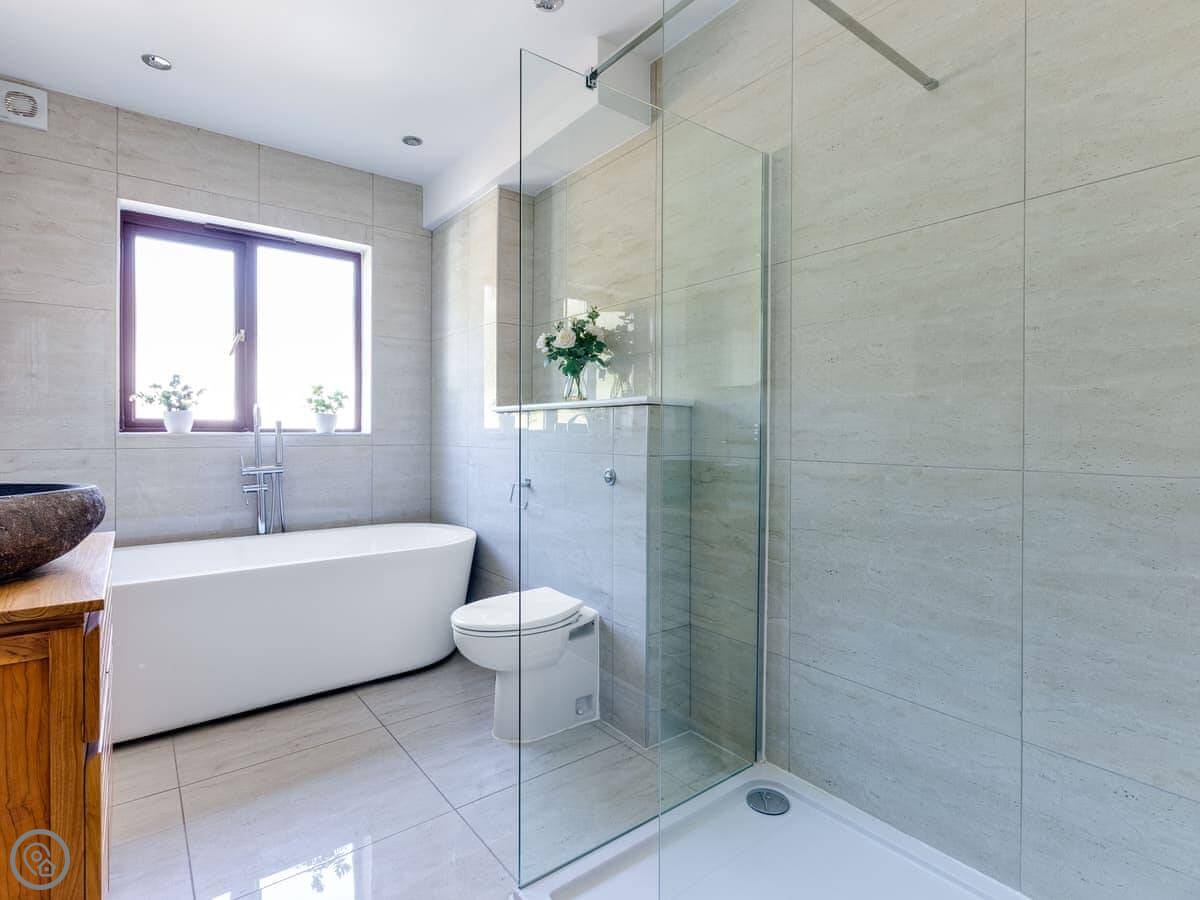 Inside, it's spacious. The kitchen is big, with a dishwasher and a washing machine. There's a woodburning stove in the living room. Bedding and towels are included. We can provide a cot. WiFi works fine.