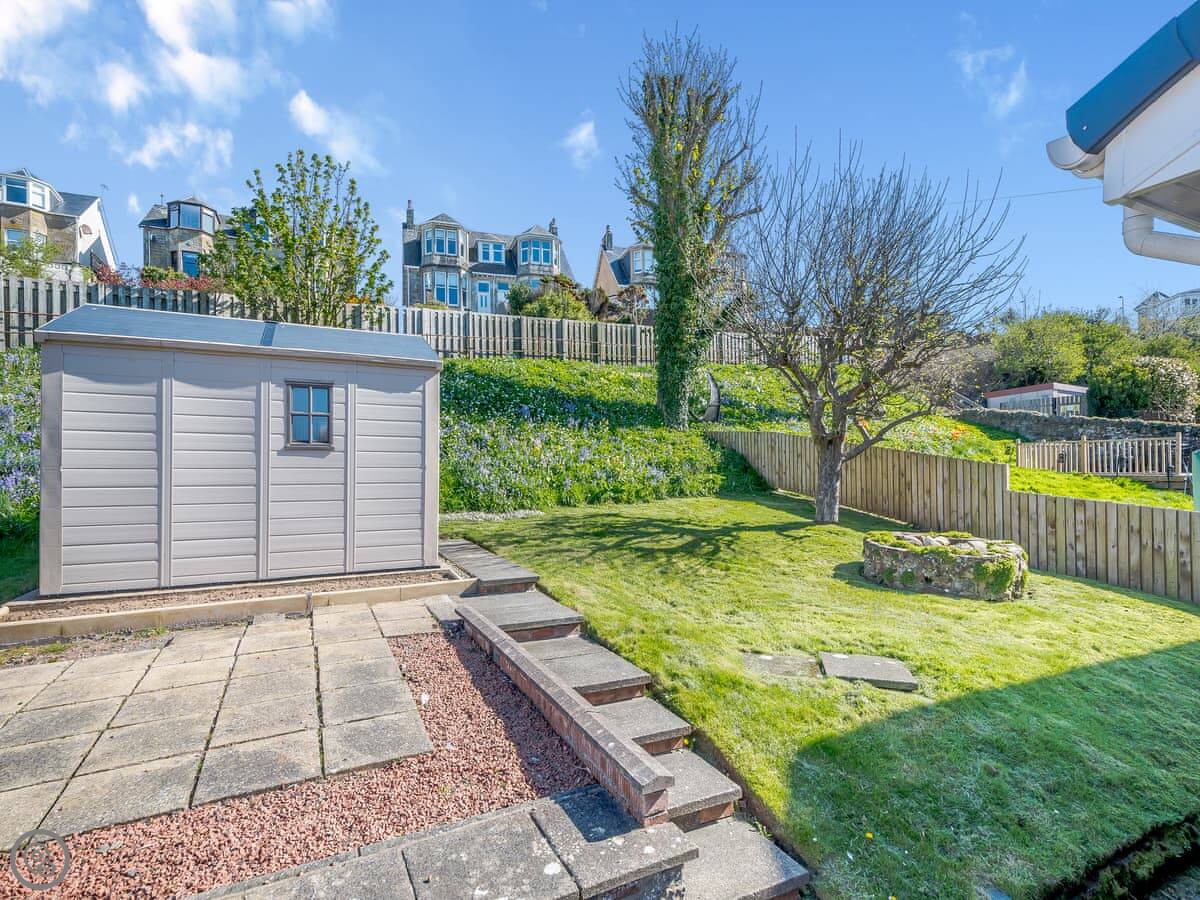 The beach is just down the hill, maybe a five minute walk. It's sandy and the views are good, out to Arran and Ailsa Craig. You can see a hotel from the front window, which does food. There's a few other places to eat a short drive away.