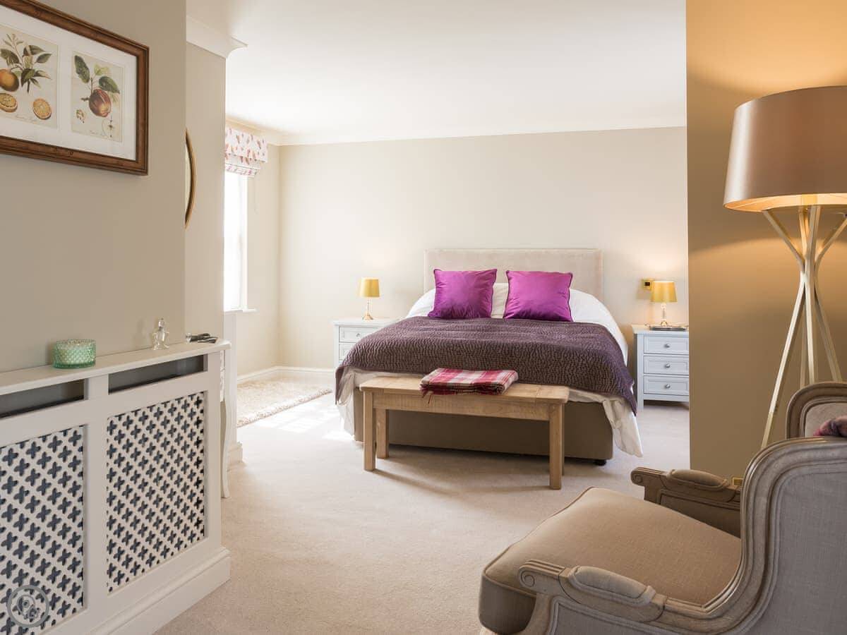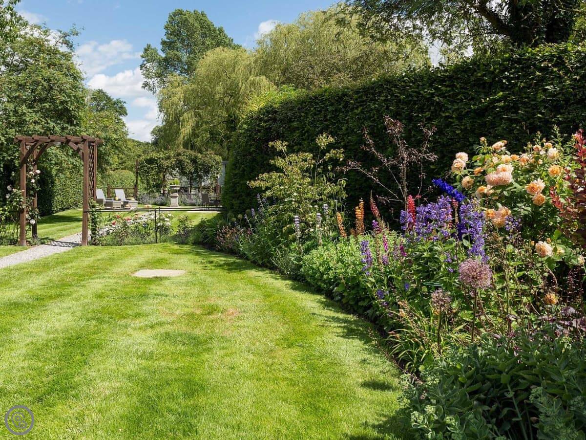 Inside Forge Cottage, an open-plan living area provides a modern well-equipped kitchen with everything you should need for your self-catering stay. The spacious living and dining area has a dining table and chairs, a comfy sofa, Smart TV, digital radio and free Wi-Fi. It is centrally heated throughout, with an open fire to enjoy on those chilly evenings. The large bedroom and dressing area includes a luxury kingsize bed with a Hypnos mattress, dressing table and wardrobe with quality bed linens, throws and cushions. The well-appointed modern bathroom features a bath and over-shower with dual shower fittings, heated towel rail, underfloor heating, toilet and hand basin with ample storage. Quality toiletries, robes and slippers are provided and everything at this boutique holiday cottage is designed with guests’ comfort and relaxation in mind. Outside, Forge Cottage has its own private gardens that our guests are welcome to enjoy, with numerous seating areas for both sun and shade lovers and a large dining area.