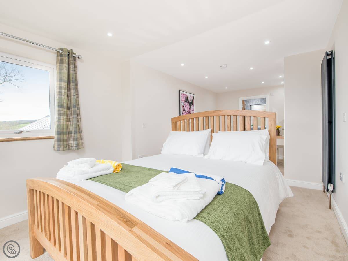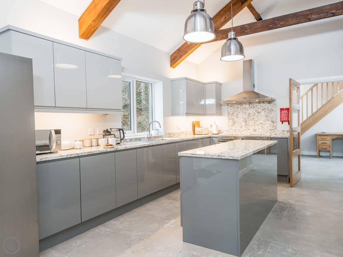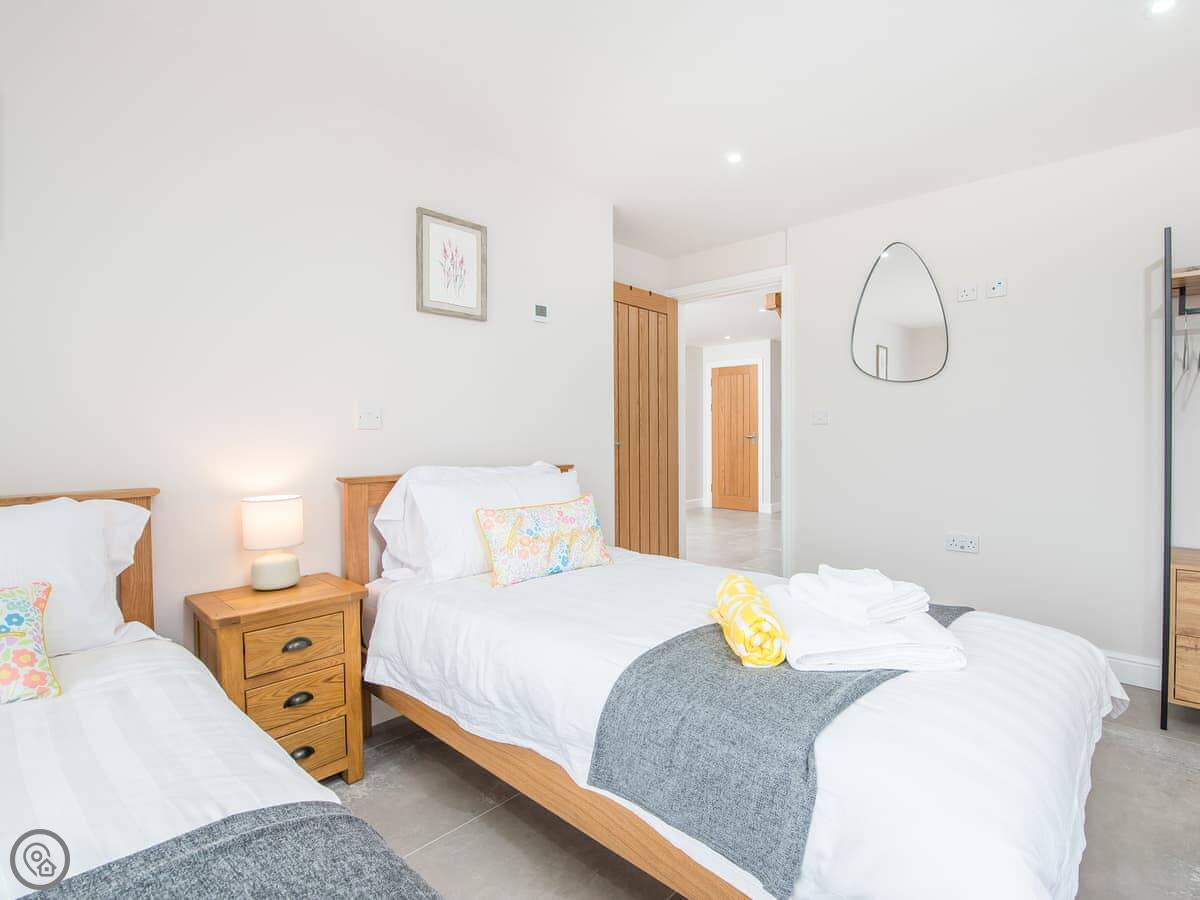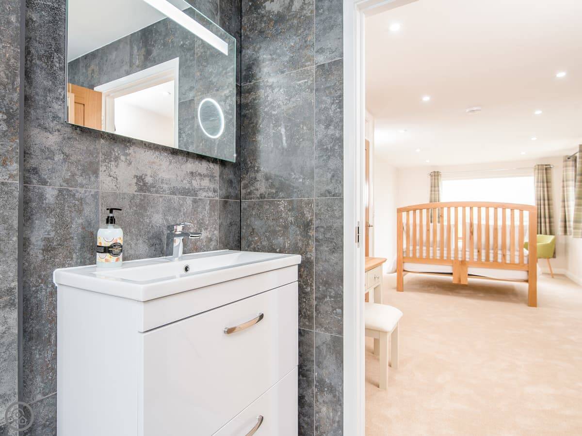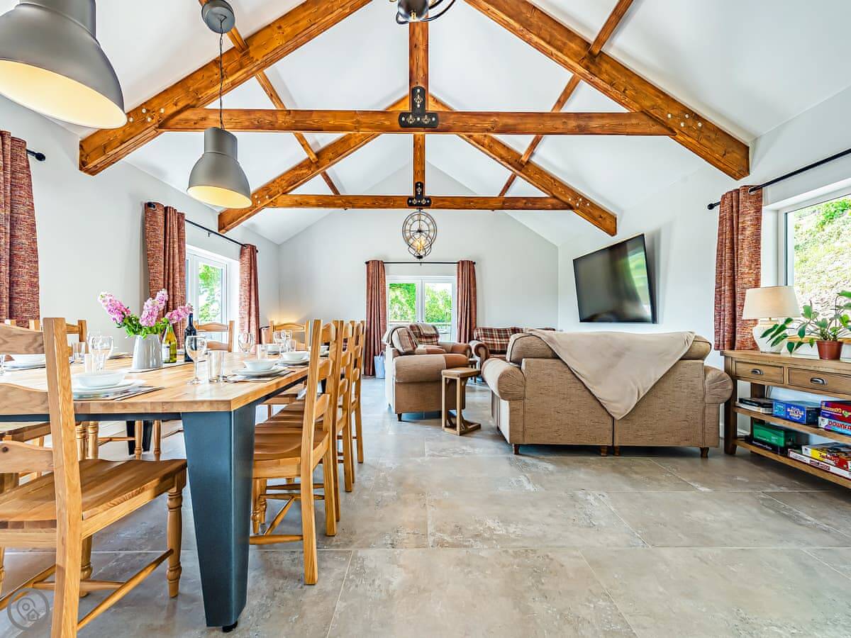 It sleeps ten people. Five bedrooms, four bathrooms. It's a 5 Star property, which means it was done up recently and has things like underfloor heating. Three bedrooms are on the ground floor. One of those has a wet room with grab rails and direct access outside, which is handy if someone has mobility issues. The stairs to the first floor are fine.