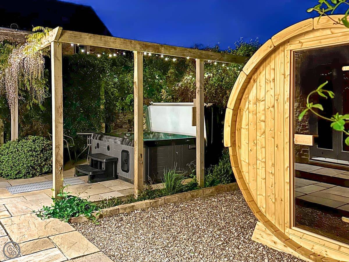 To the rear of the property is a charming patio area with garden furniture and hot tub, the peaceful surroundings offer a fantastic place to sit and have a drink al fresco style in the warm summer months or relax in the superb hot tub. The Sauna is available for guests private use with three hours use included for each day of your stay.