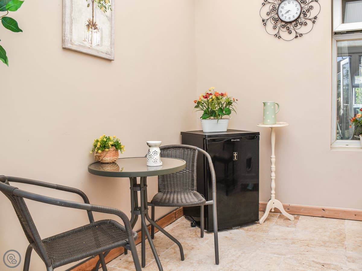 The house has all the necessary essentials and makes a comfortable base for visiting the area. The accommodation is complemented by traditional furnishings throughout. As you enter the ground floor there is a living/dining room which even has a piano and workspace, a small kitchen and modern shower room. A lean-to leads out to the rear garden, which is surprisingly quiet given the central location. Upstairs there are two generous double bedrooms, one with an en-suite toilet. This property is pet friendly, so feel free to bring your pet along. There is also Wi-Fi and a Smart TV for your entertainment.