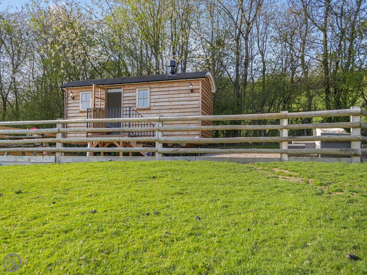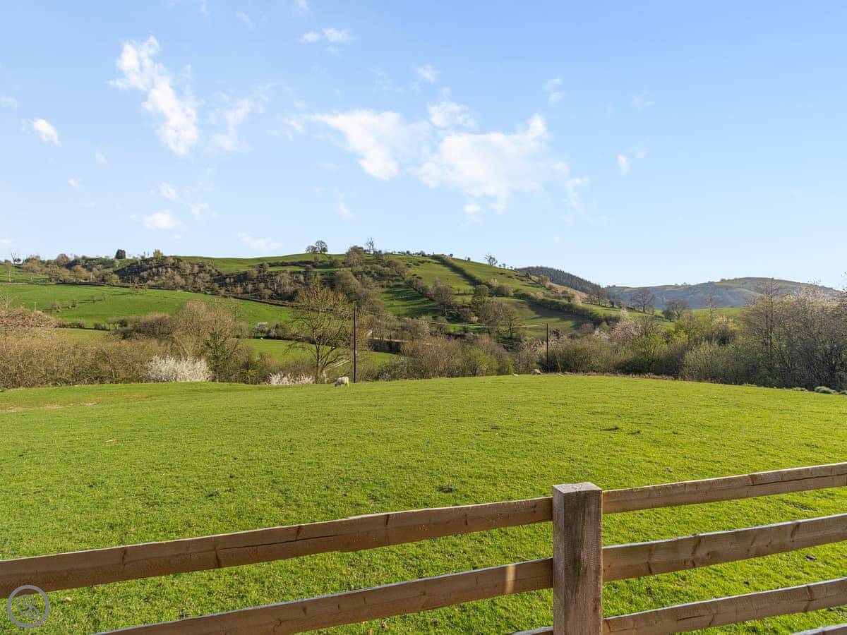 You're on a working farm, so there are animals around. You can walk around the fields here. The view looks out towards Snowdonia, if the weather's clear.