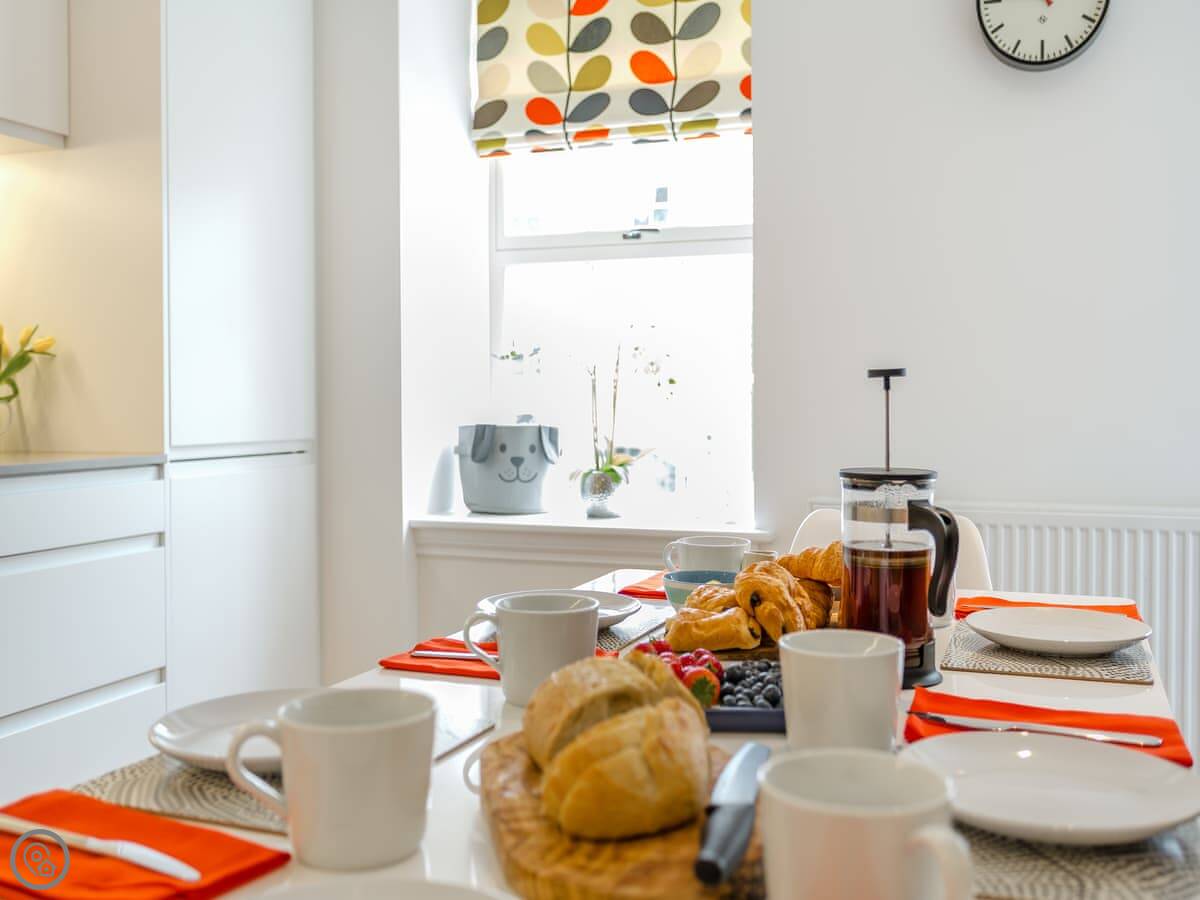 Inside, the kitchen is well-equipped with a dishwasher. There's a washing machine, smart TVs, and WiFi. Bedding and towels are included. One well-behaved dog is welcome. There is parking on site.