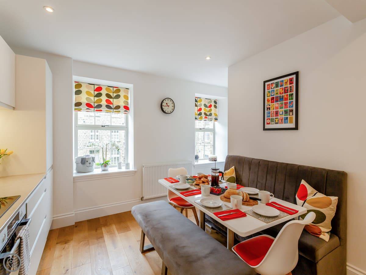 The Mill Townhouse is in Glasshouses, a village near Pateley Bridge. It's a converted rope mill, so it's a tall, stone townhouse. It's Grade II listed. It's right on the edge of the River Nidd.