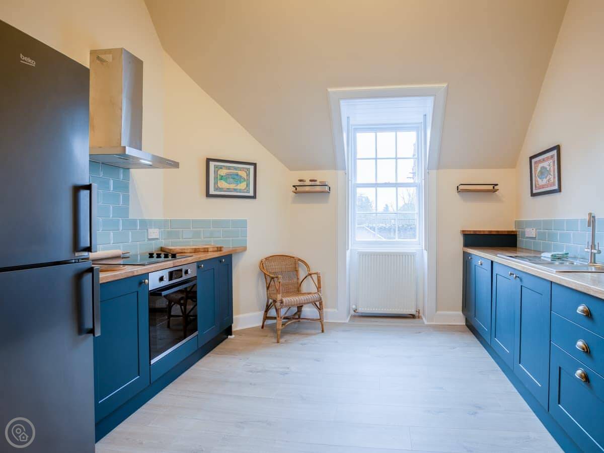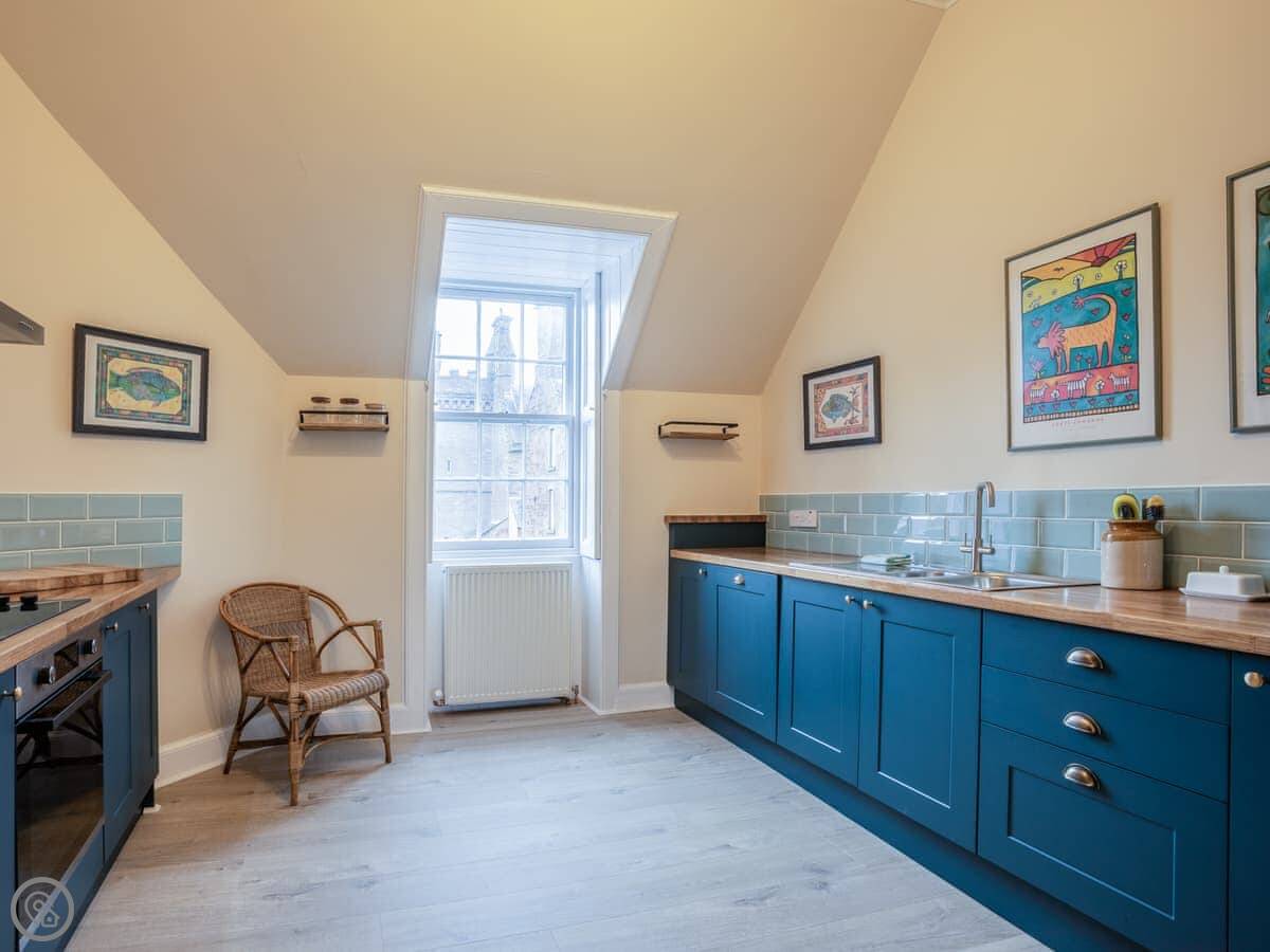 It sleeps four, in two bedrooms. One bathroom, but it's a very big one. It has a 5 Star rating, so it's well-equipped and comfortable. The owner leaves a welcome pack with basics like bread, eggs, bacon, and some cereals.