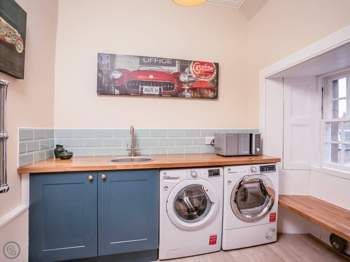 You can bring up to two dogs. There's a separate laundry room which is handy for drying them off, or your coats.