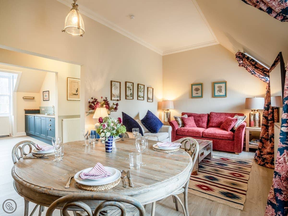 Glen Apartment is in the west wing of Kinnaird Castle, near Brechin. It's an apartment, not a whole house, but it's on two floors so it feels quite separate.