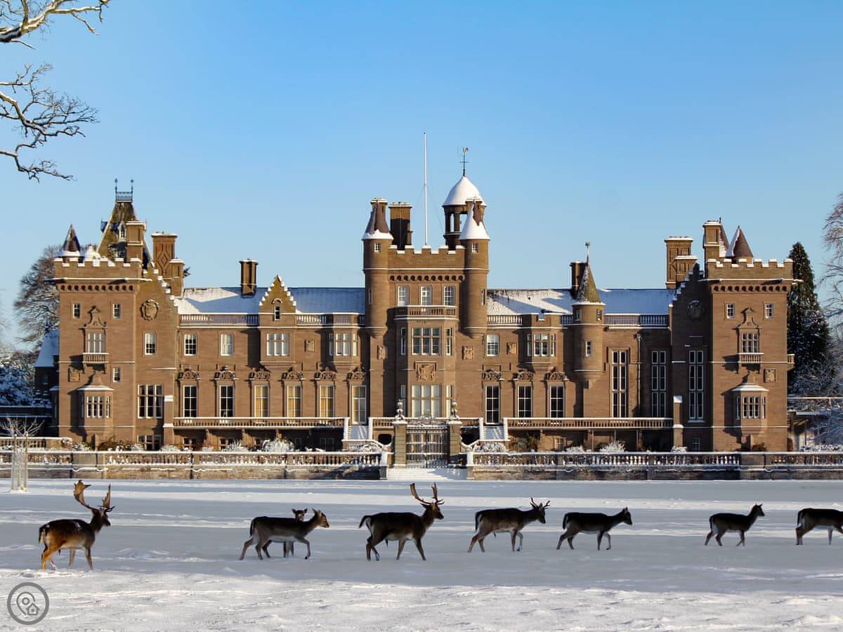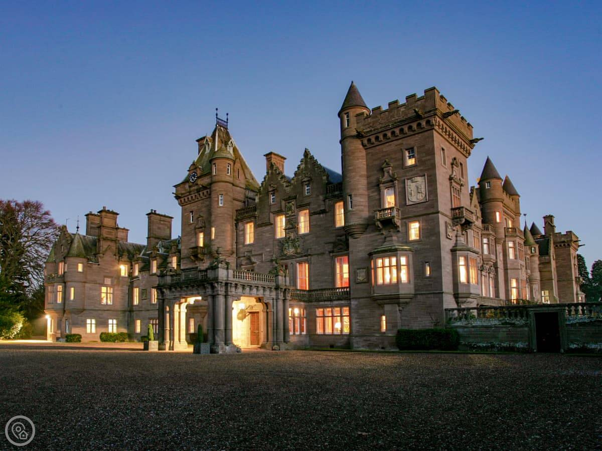 The estate is private. You can walk around the grounds on paths that go down to the River Southesk. There's a tennis court you can use. You often see red squirrels and birds like woodpeckers on the estate.