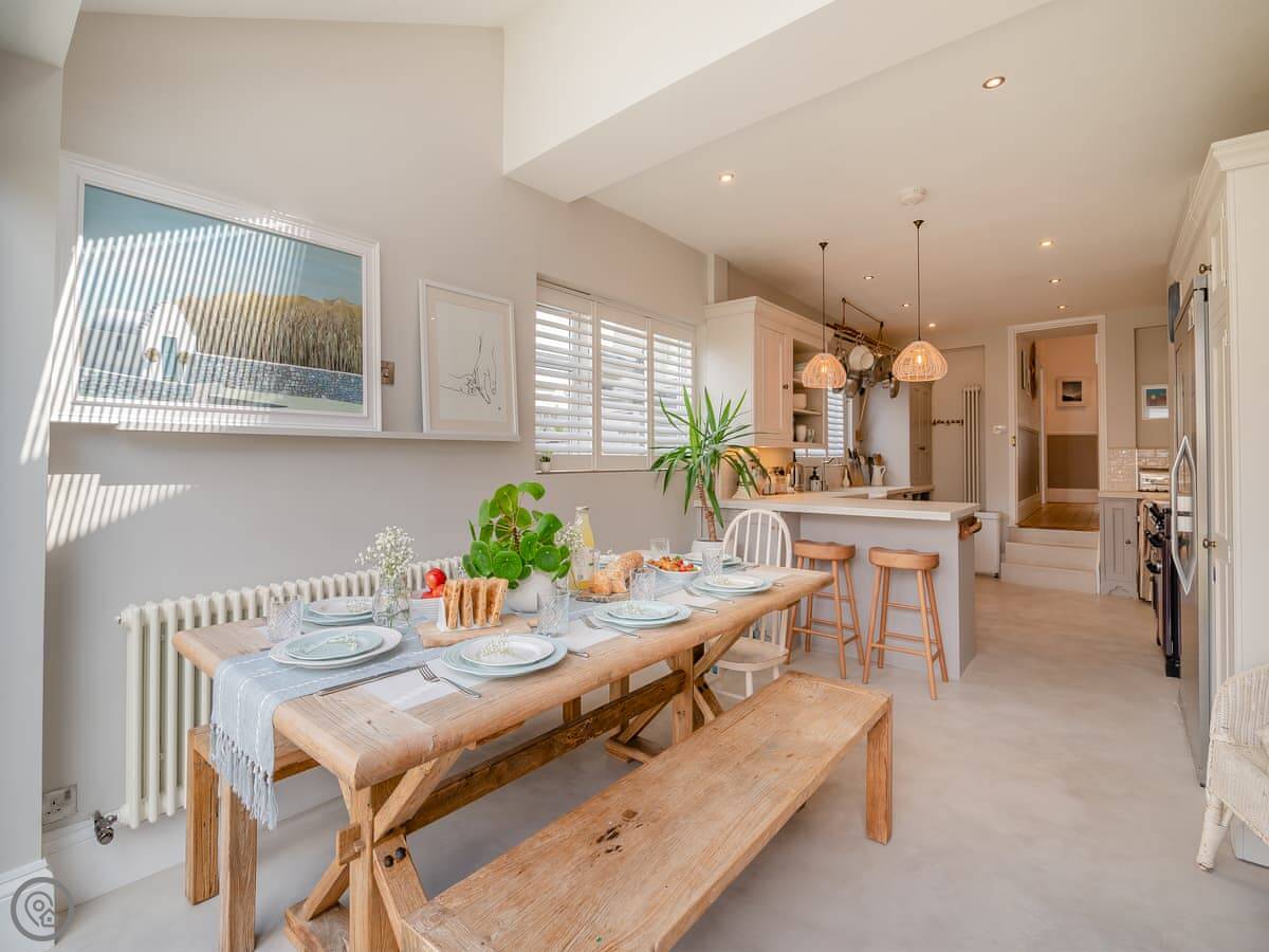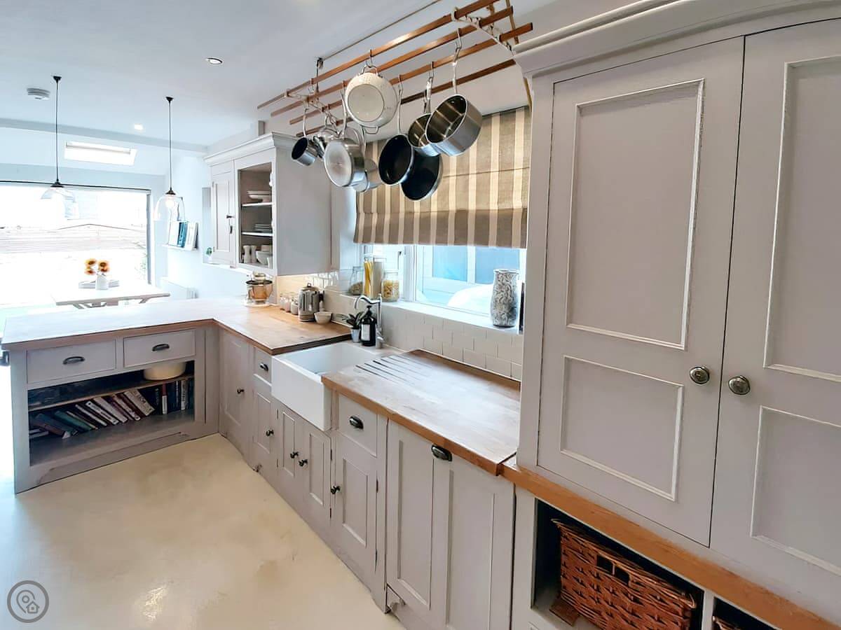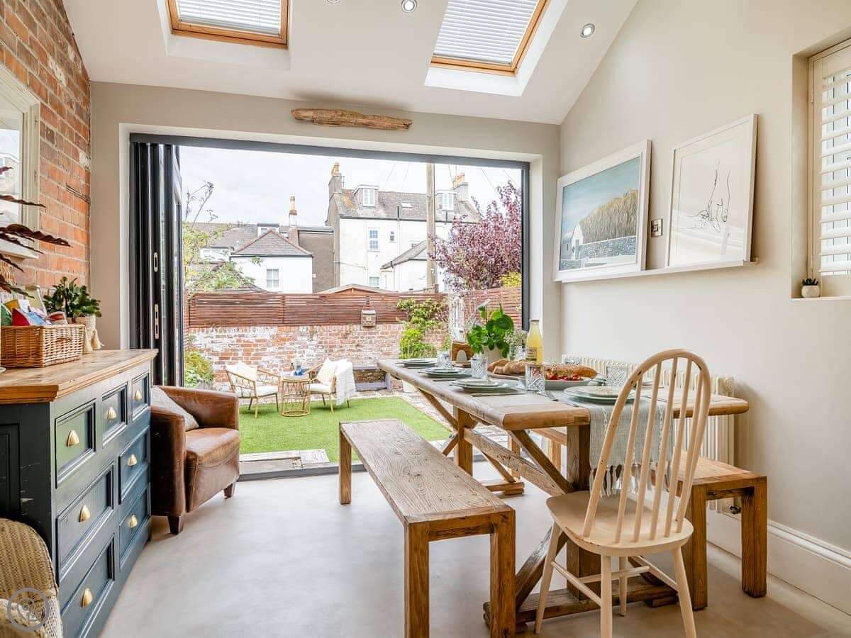 Pierside Coastal Retreat is set over three floors. On the ground floor, you will find a comfortable living area where you can sit back, snuggle by the telly and warm your toes in front of the wood burner in the cooler months, a playroom/snug room where you will find another Smart TV, board games and toys to keep the children entertained, a downstairs toilet and the traditional yet modern kitchen diner with Range cooker and bi-fold doors leading to the beautiful enclosed garden.