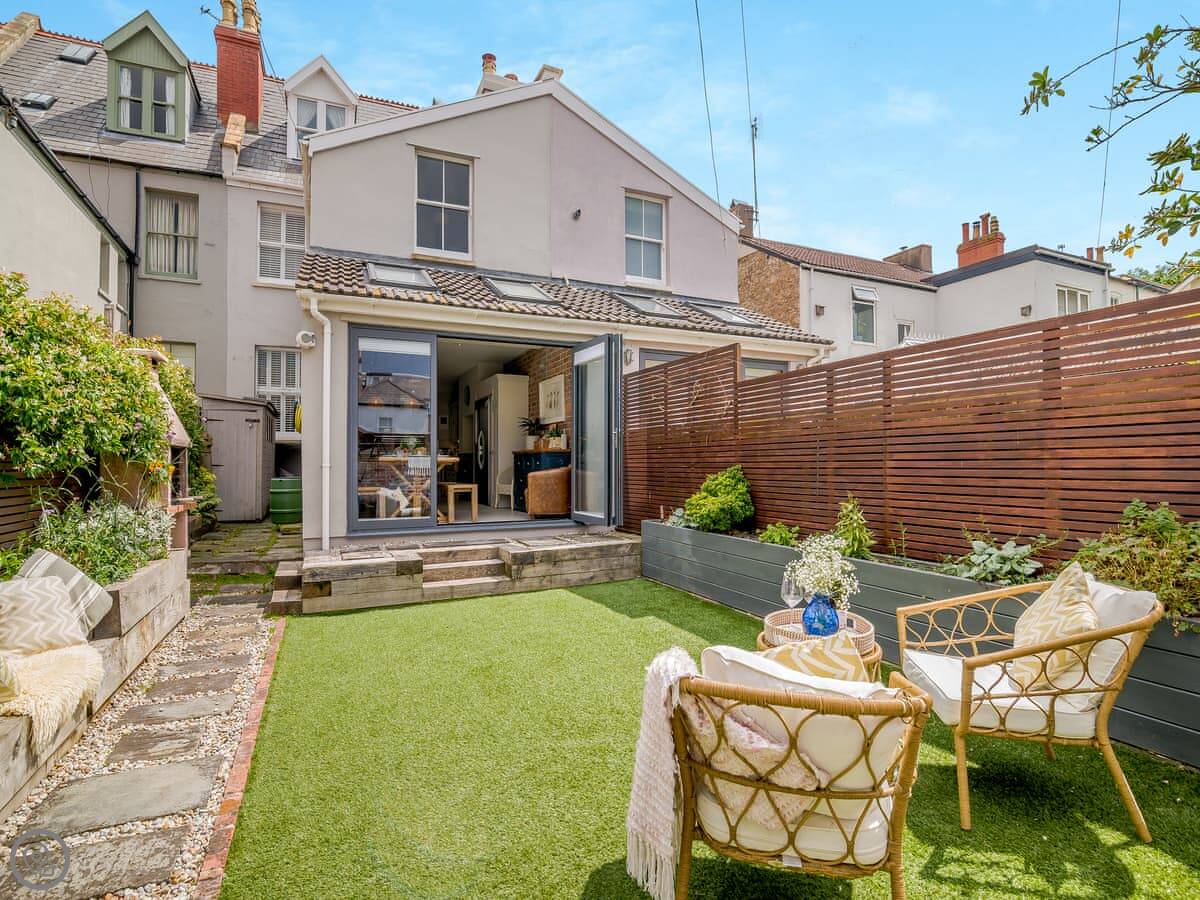 The south-facing garden has a hand-built Portuguese BBQ and is ideal for sitting out with the family. Free on-street parking is available.