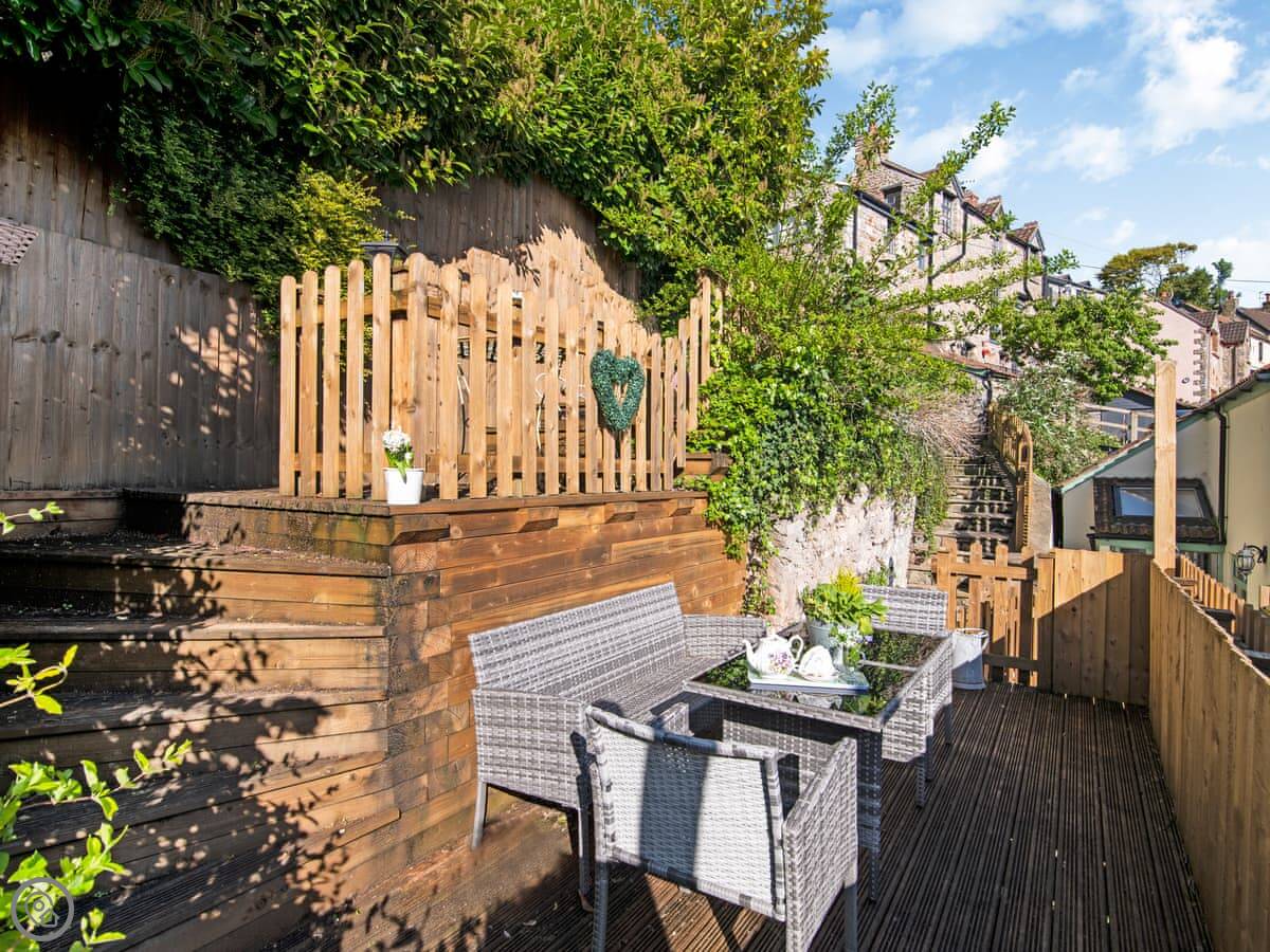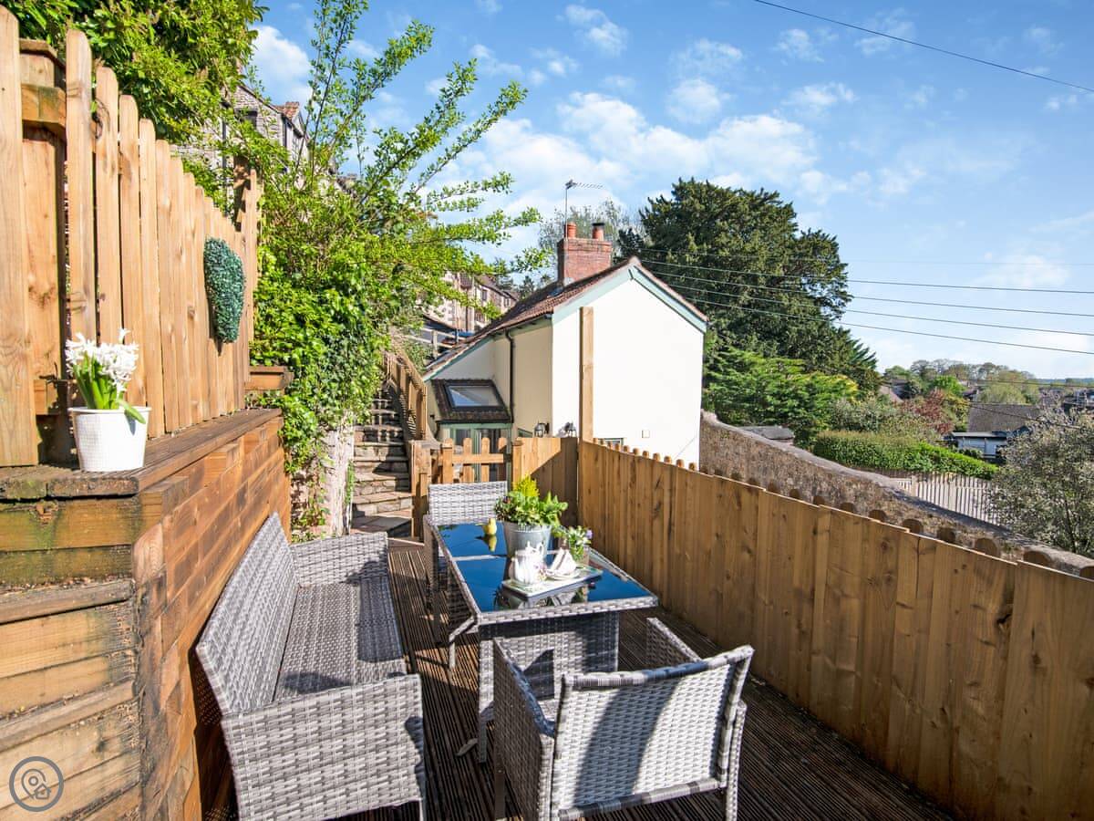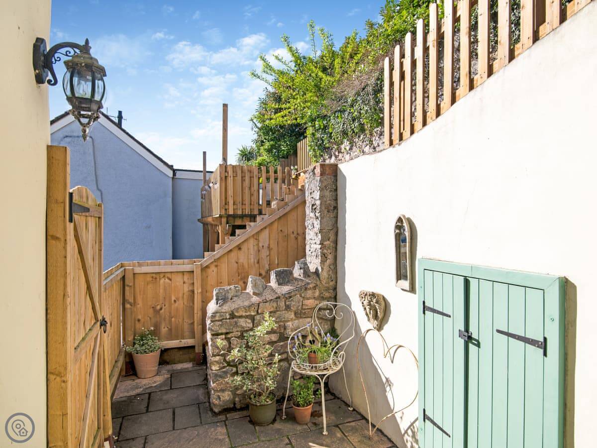 Upstairs, you have two spacious bedrooms, one double and one twin as well as two bathrooms, one with shower cubicle and the other with bath and shower over. Outside, the garden has been set on three terraced levels. The lower level has a small patio area, the middle terrace has a table and chairs for al fresco dining and the top terrace has a bistro set, the ideal place for a sundowner after a busy day! There is a shed provided for bike storage or you can hire bikes nearby.
