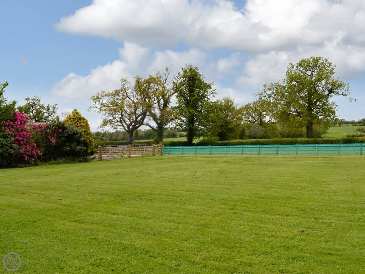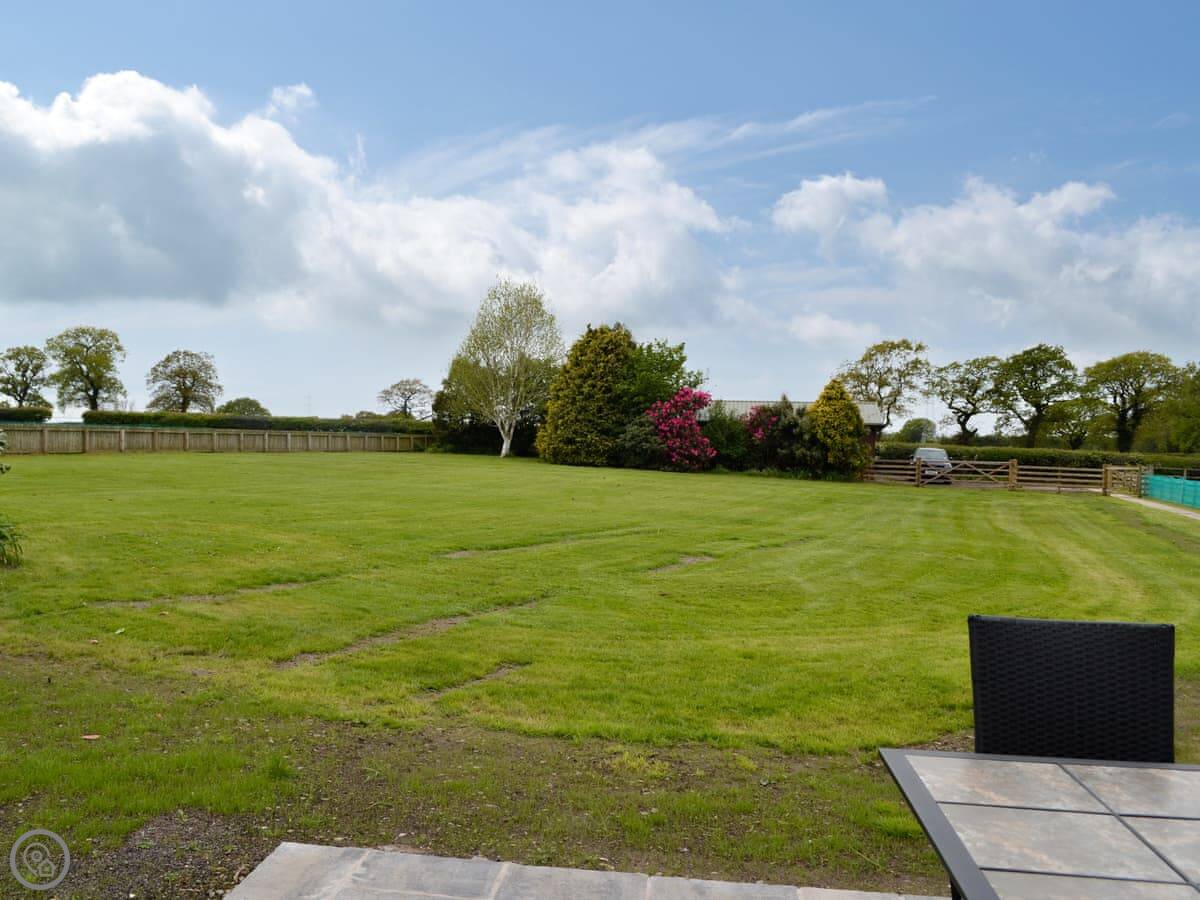 The garden is quite large. It looks out over fields.