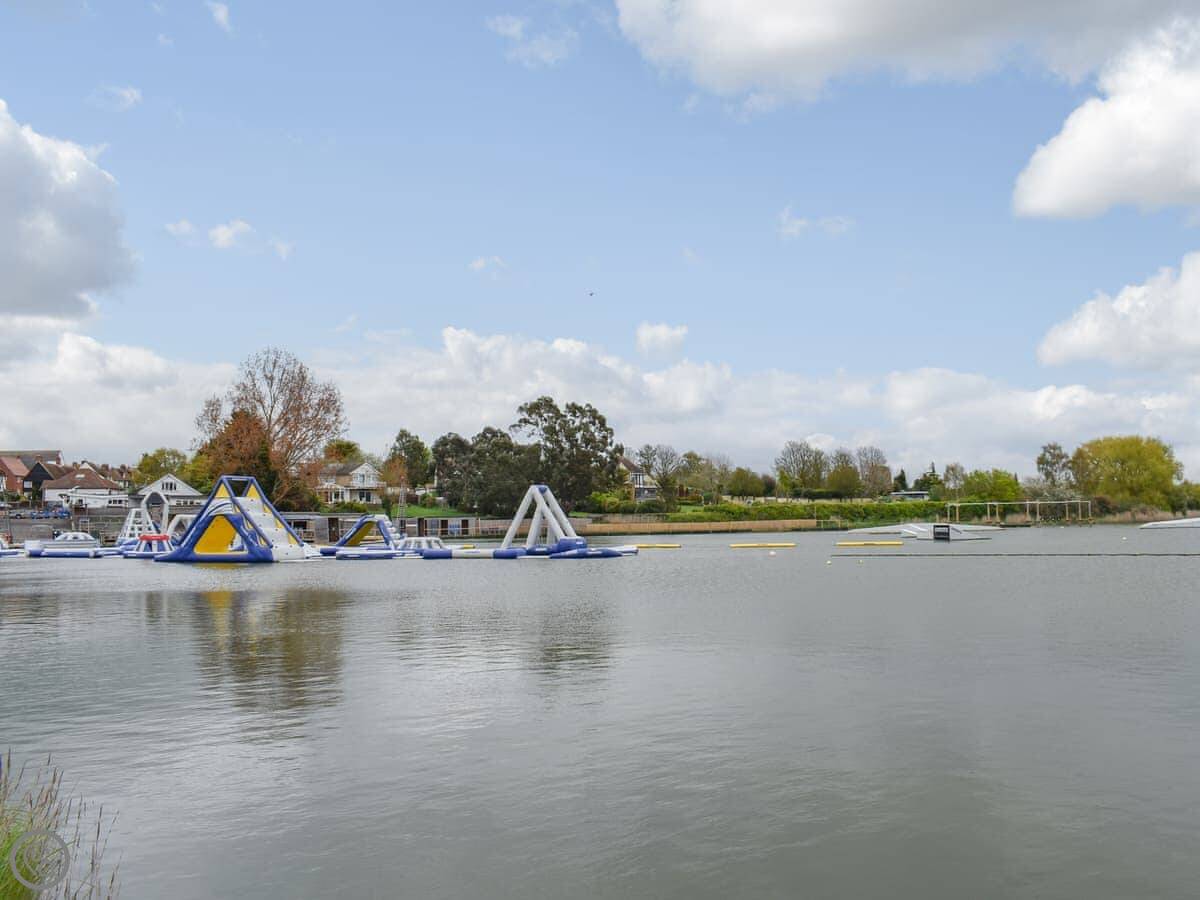 There’s a footpath from the yard that follows the coast towards Point Clear. Right opposite the boat yard is an aqua sports centre. They do wakeboarding and paddle boarding, and there’s an inflatable aqua park.