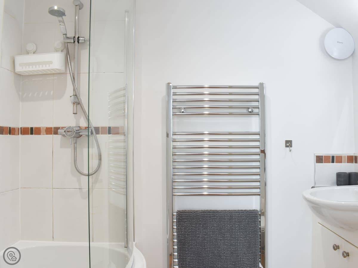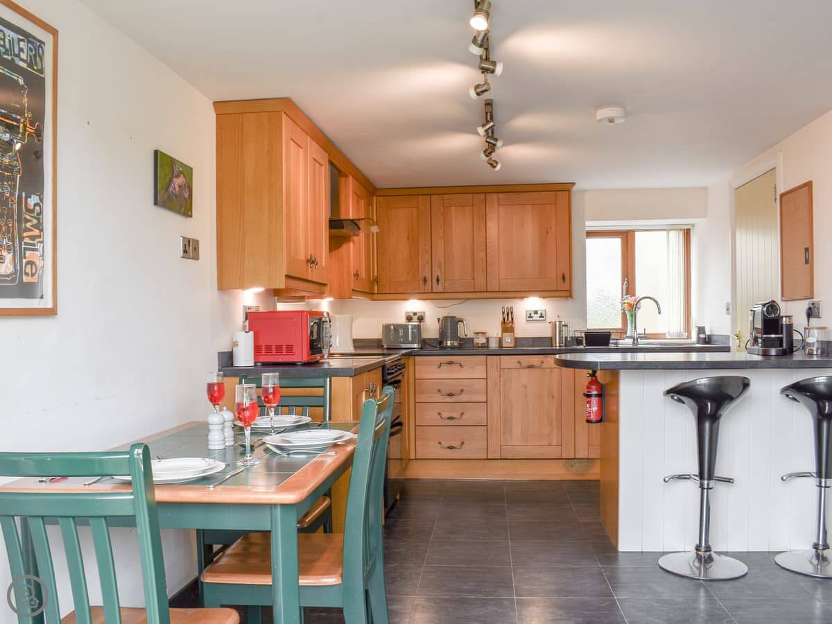 The kitchen has what you need, fridge, dishwasher, washing machine. There's an enclosed garden with a patio. It looks out over fields. You get a lot of birds.