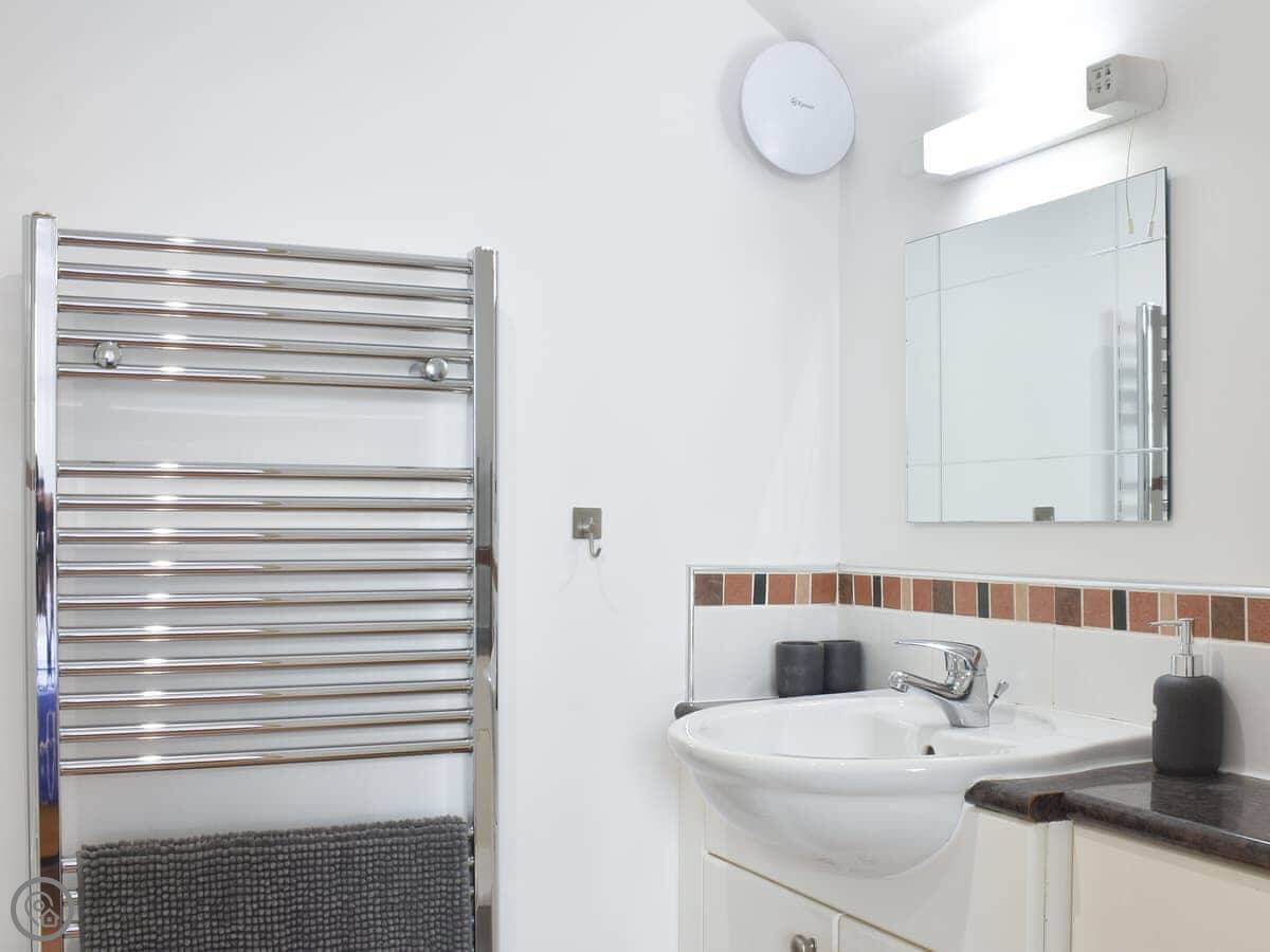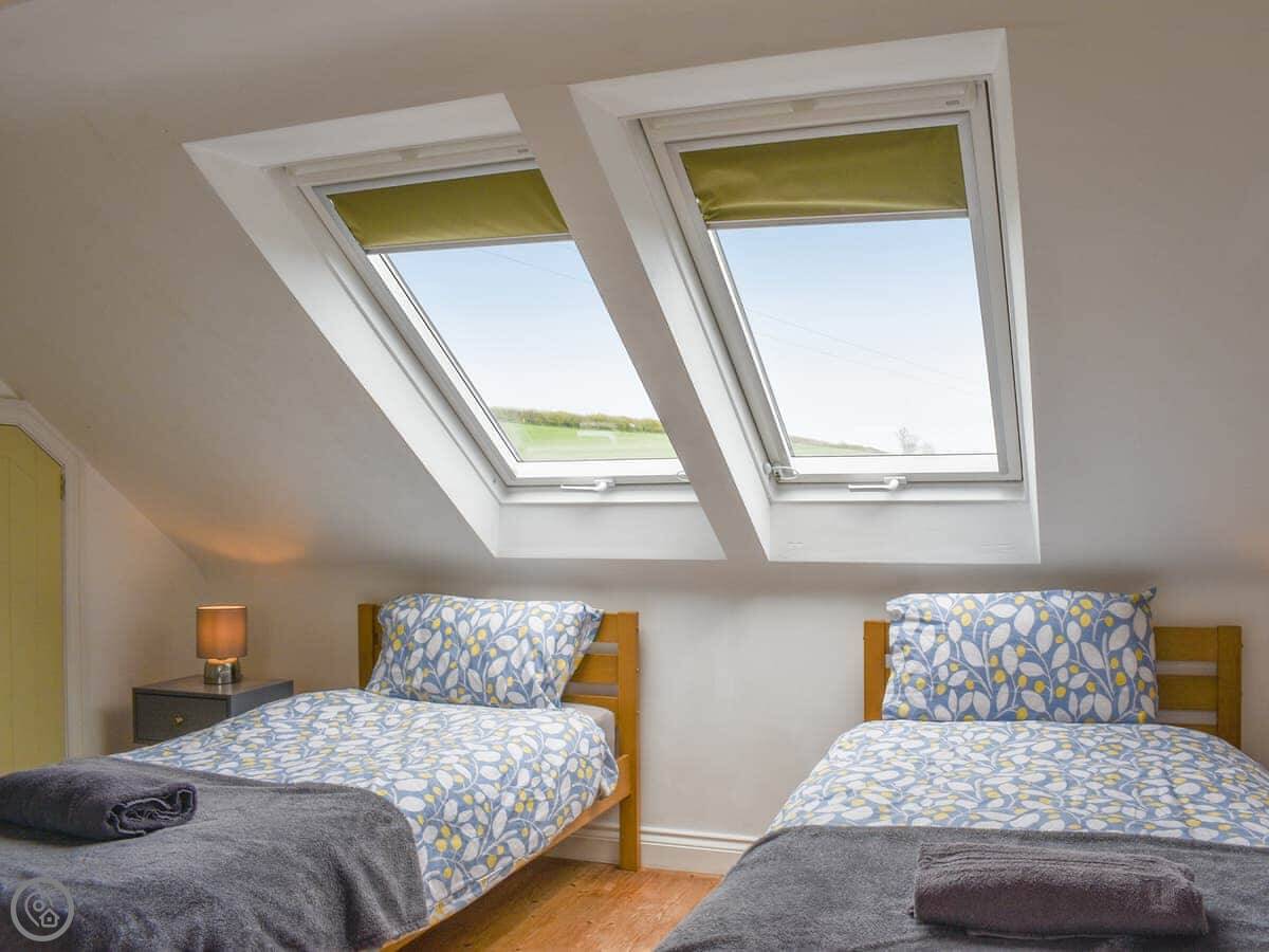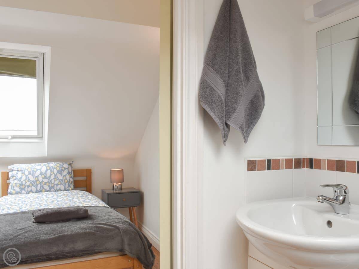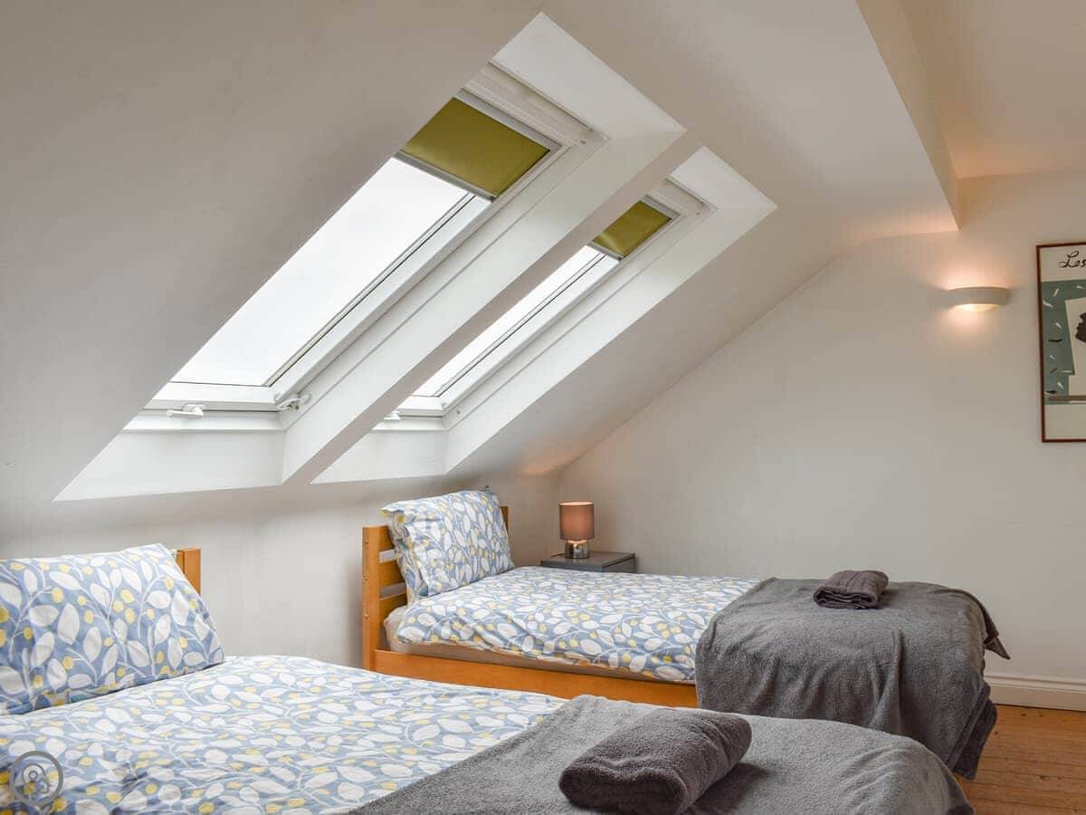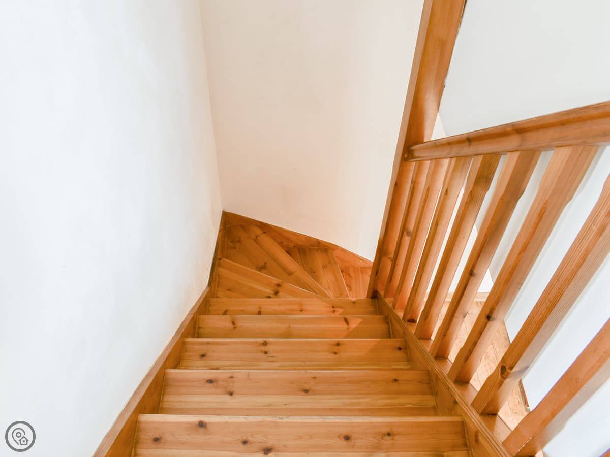 It's a two-bedroom cottage, sleeps four. Both bedrooms have their own bathrooms, which is useful. It's got a 4 Star rating. It's well put together, modern but in a stone building. The stairs are fine, nothing unusual.