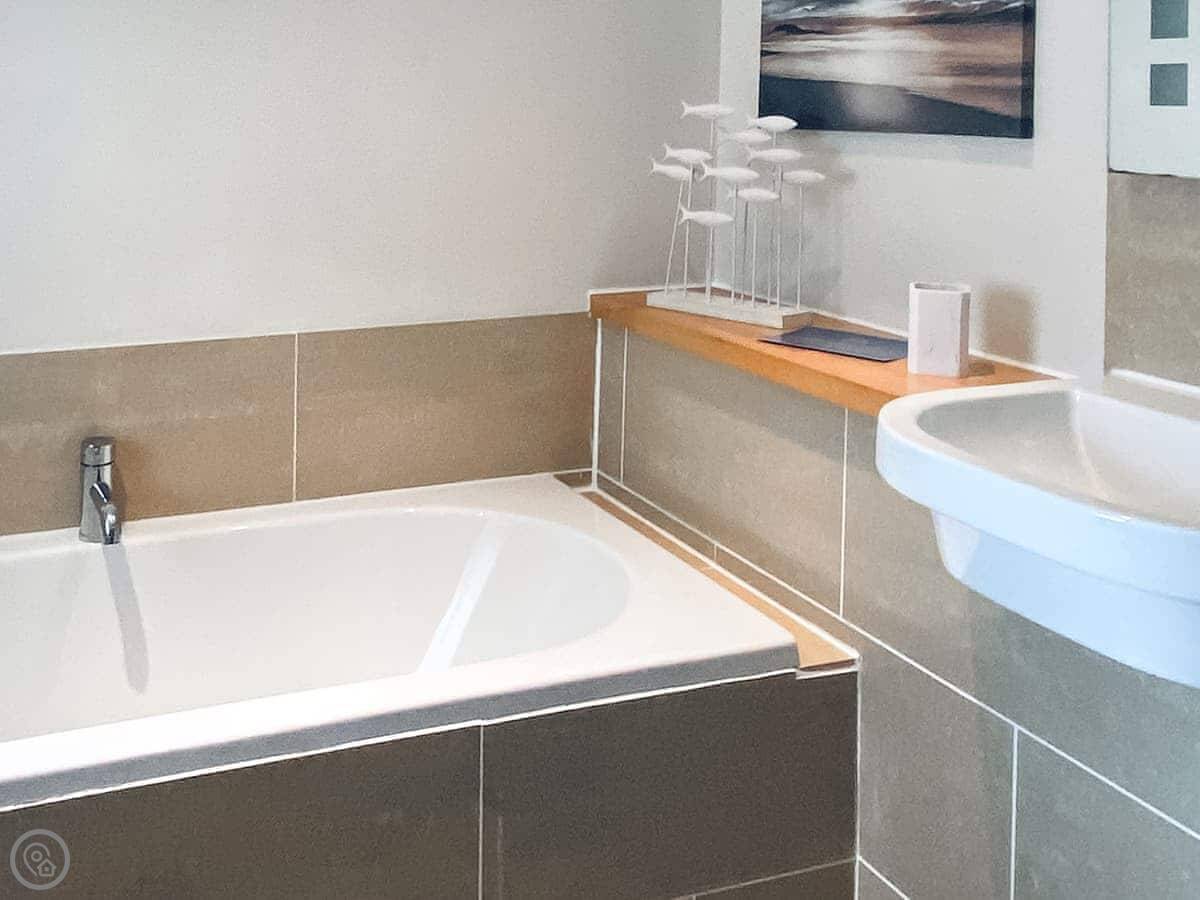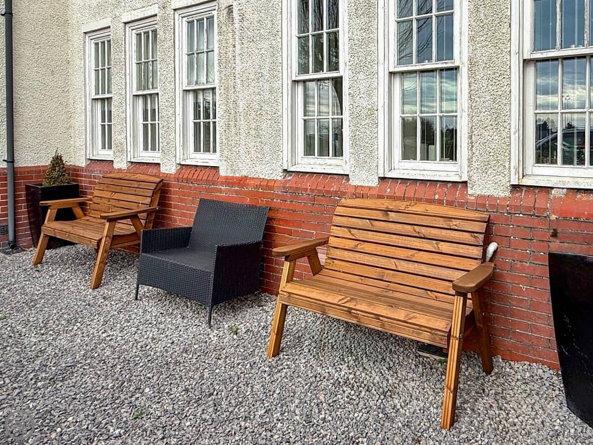 This entire house sleeps up to six guests and features one kingsize, one double bedroom, and a twin bedroom. It has two contemporary bathrooms, a spacious living room leading to a large dining room, and a well-equipped, fully-integrated kitchen. There’s plenty of parking, and a children’s park across the road too so you can enjoy the fresh seaside air. Outside the front of the property, is a spacious seating area to watch the world go by.