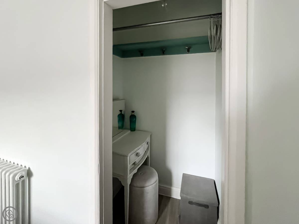 You've got a good garden with a nice view over the fields. The patio doors from the kitchen open straight onto it. There's a handy storage room just inside the front door for boots, wet coats, bikes, that sort of thing.