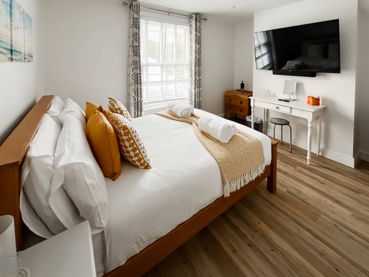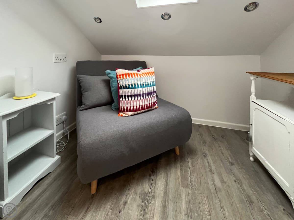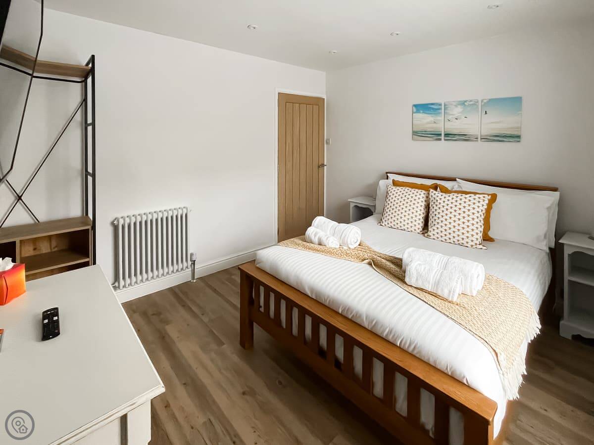 It's had a refurbishment, so everything is new and works. It's a 4 Star place, which means it's comfortable and well-fitted. Sleeps five, but that's with one person on the single chair bed in the snug. Two proper double bedrooms, one downstairs. One bathroom. The bathroom is the thing everyone comments on, it's a bit special.