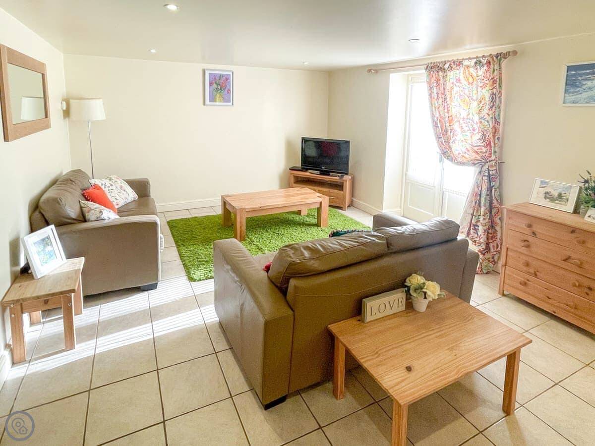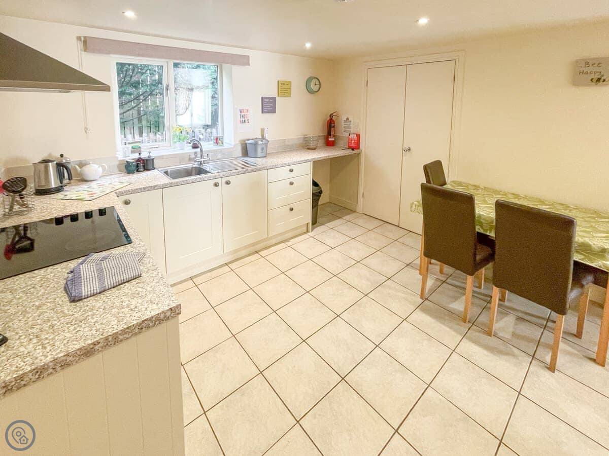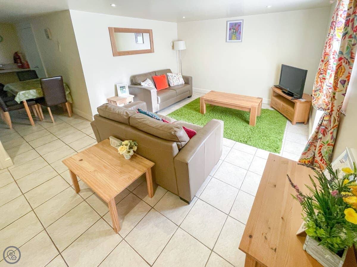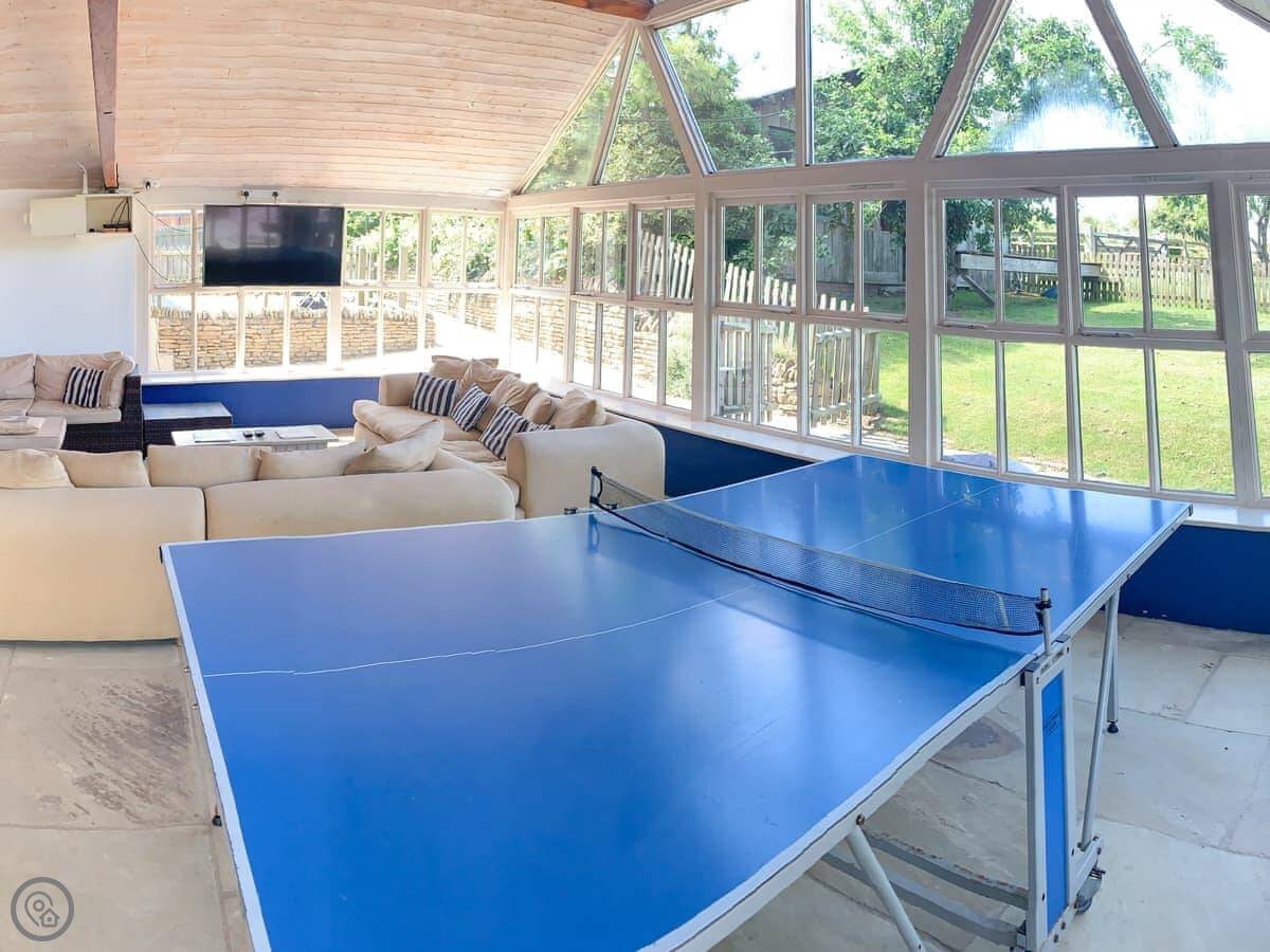 There’s a shared games barn on site with a table tennis table and a football table. The living area has a TV and WiFi.