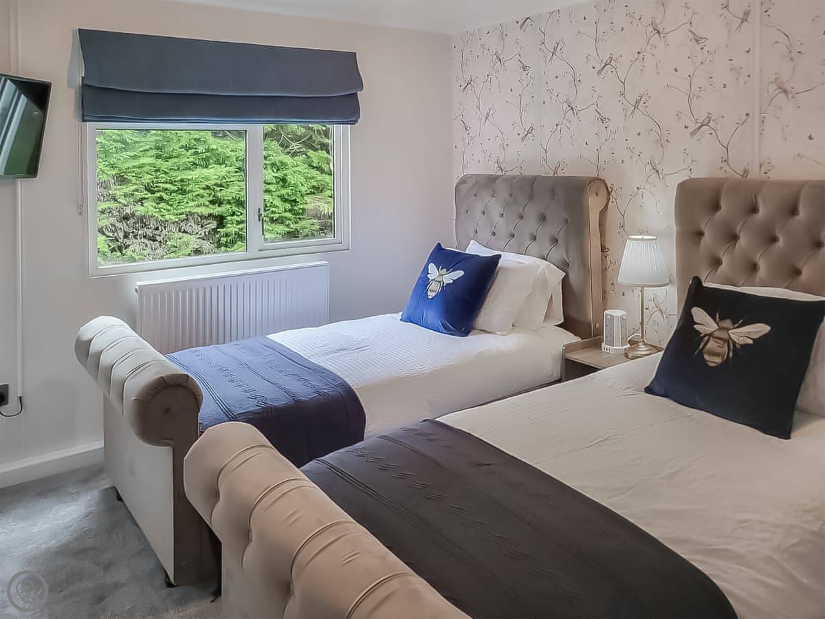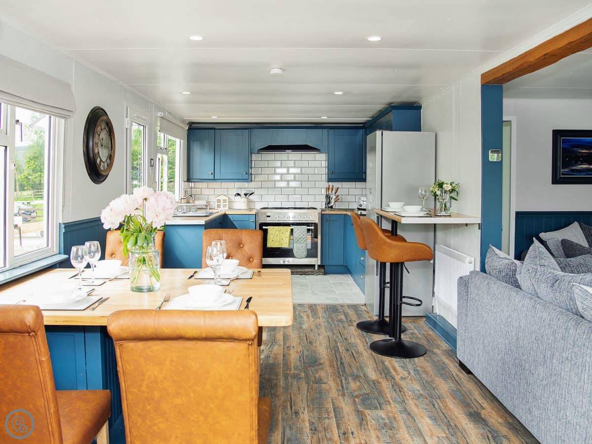 Acre Hill Lodge offers comfortable accommodations for up to six guests all on one level. Set on the edge of a working farm please note there will be hens, ducks, and cats around dogs on lead countryside sheep and over small animals. The lodge overlooks picturesque countryside views, the lodge provides everything you need to enjoy your time away. Upon arrival you are greeted by an allocated parking area for up to two cars, parking available for a third car in the main driveway in, and an enclosed garden can be found at the front of the lodge, the ideal place to enjoy a bistro-style breakfast and enjoy the view with your furry friends. Entering the property, you are greeted by an open plan living space, where your fully fitted kitchen awaits you providing everything you need to rustle up those home-cooked meals. Don’t fancy cooking? Why not treat yourself at a local restaurant or café, a short drive away? Relax and unwind in the living area and enjoy the warmth of the wood burner while you watch your favourite show or movies. When sleep calls, you have three bedrooms to choose from to sink down and rest your head. The children’s bedroom has a bunk bed and TV. Enjoy the splendid location and picturesque scenery.