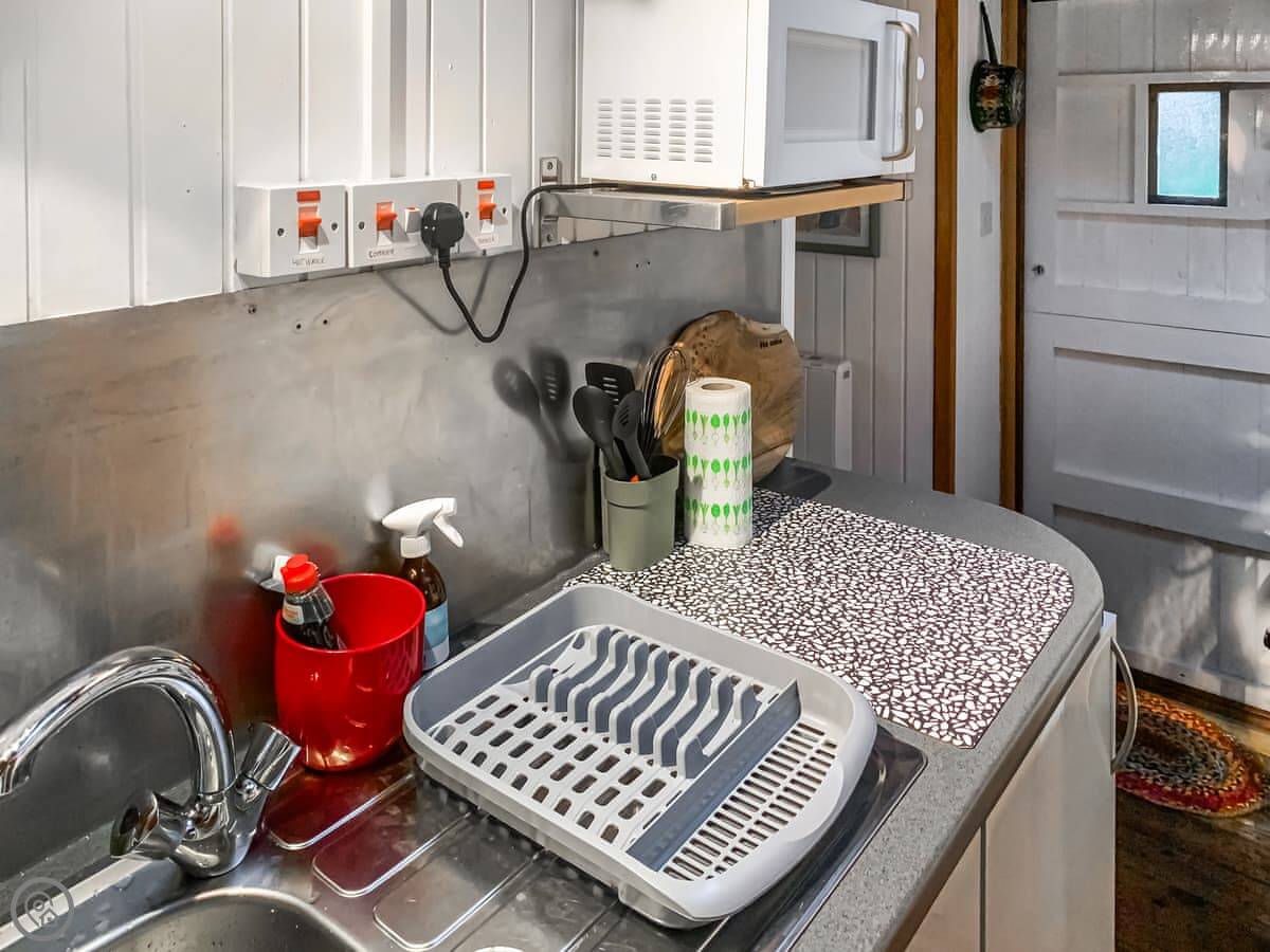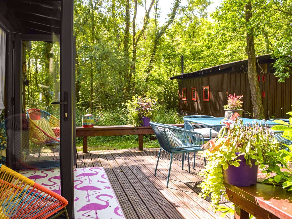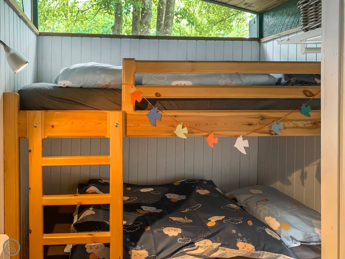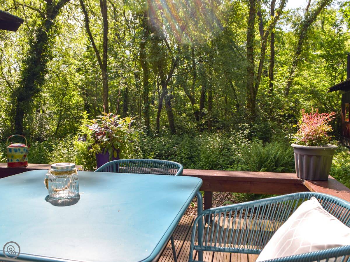 The Cabin is on Penlan Holiday Village in Glandwr, Carmarthenshire. It's a detached wooden cabin on a quiet, wooded park. You'll hear birds.