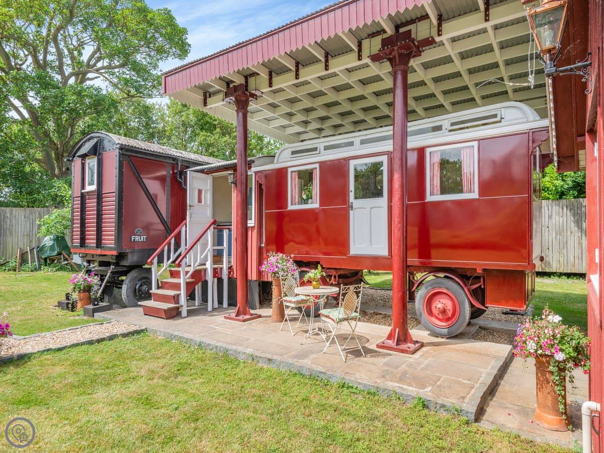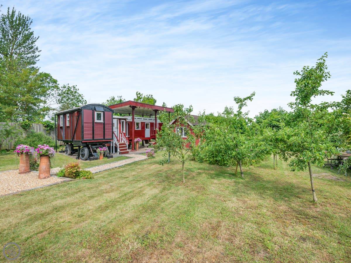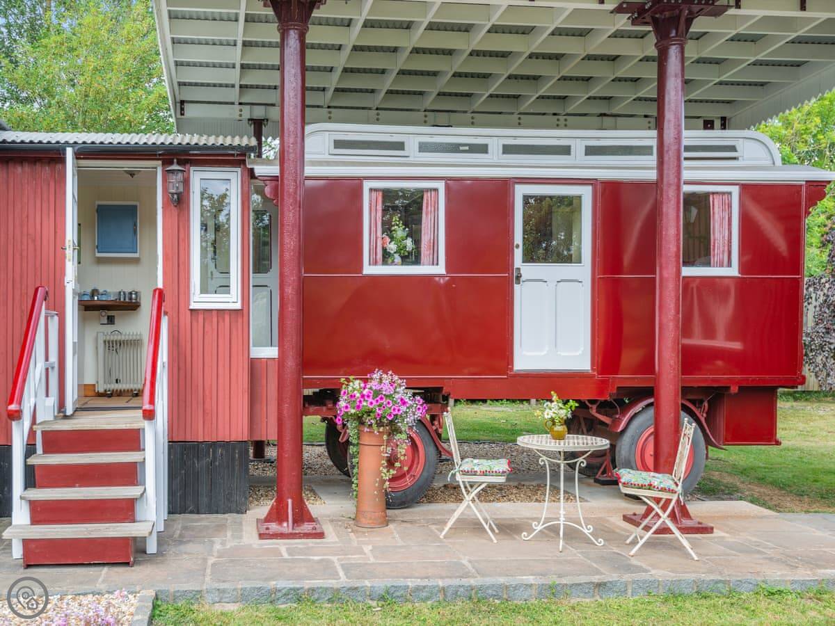 Mahalia is on our place in Fordham. It's a converted goods wagon, the sort they used to carry bananas in. It sleeps two people. It's got one bedroom and a shower room.