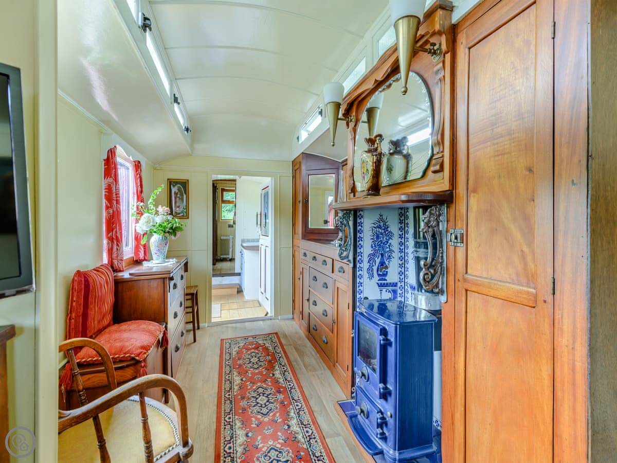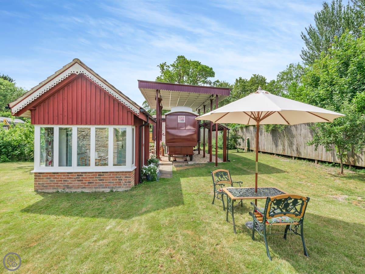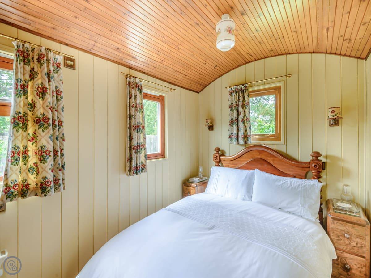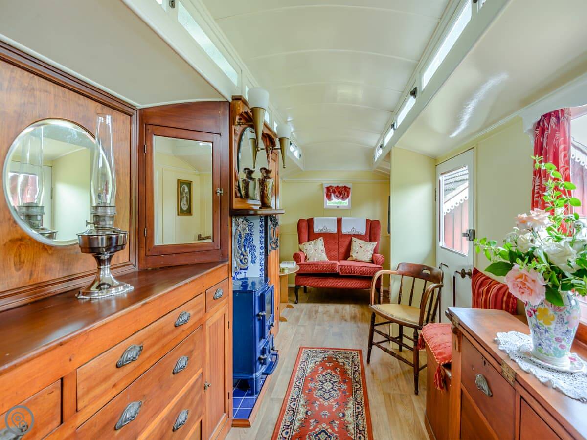 Mahalia is on our place in Fordham. It's a converted goods wagon, the sort they used to carry bananas in. It sleeps two people. It's got one bedroom and a shower room.