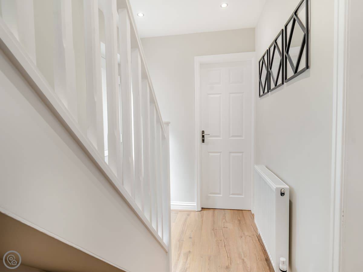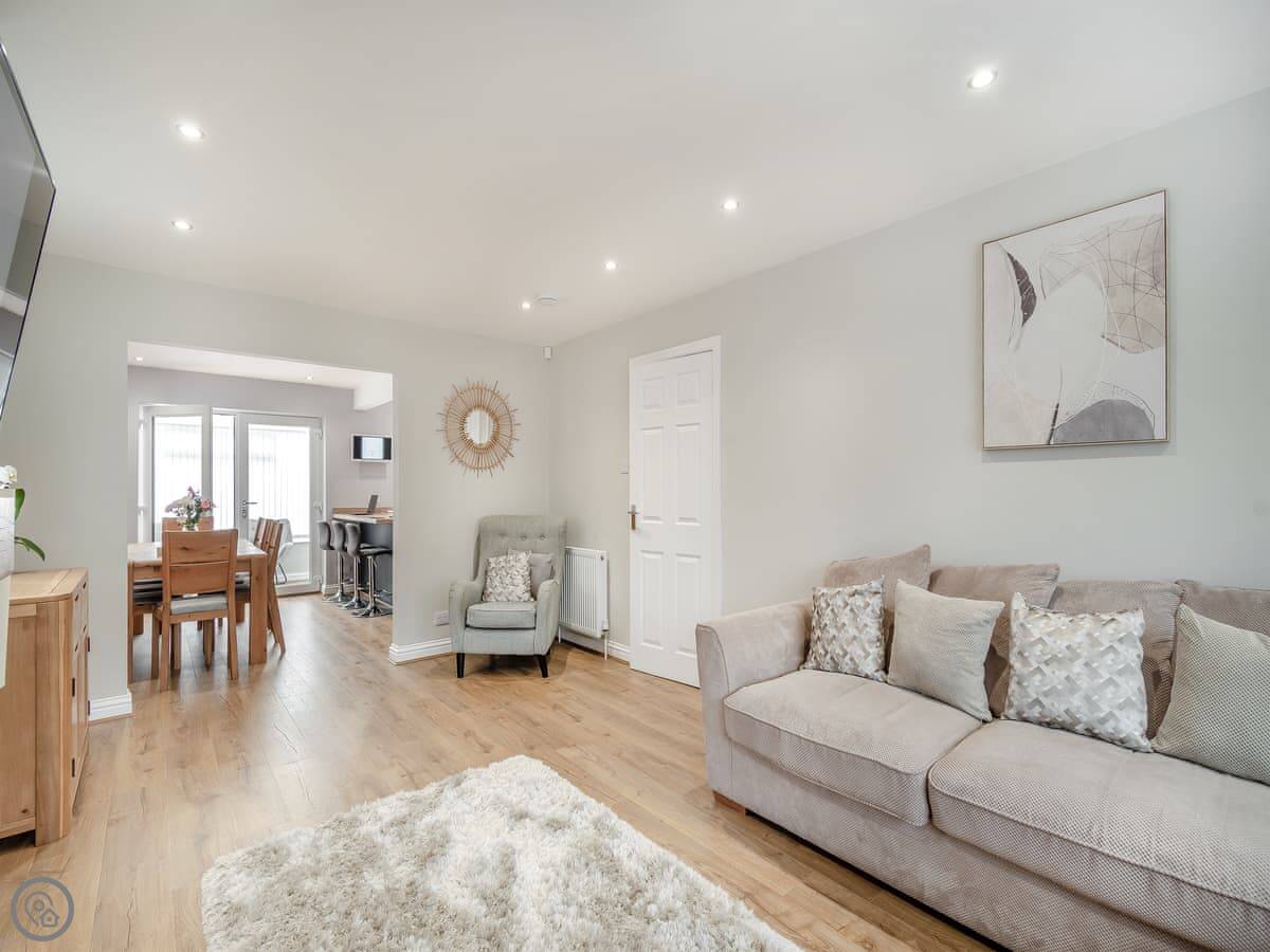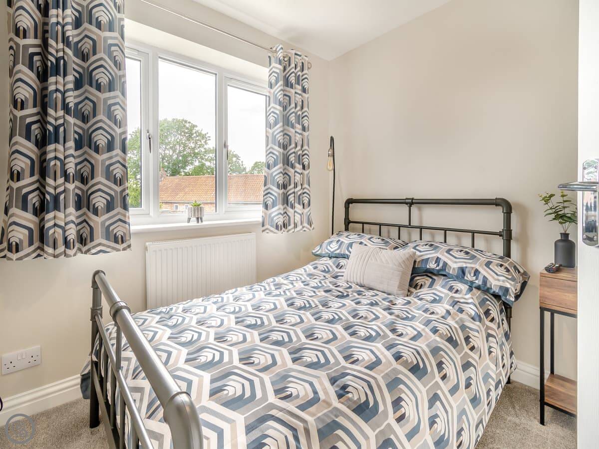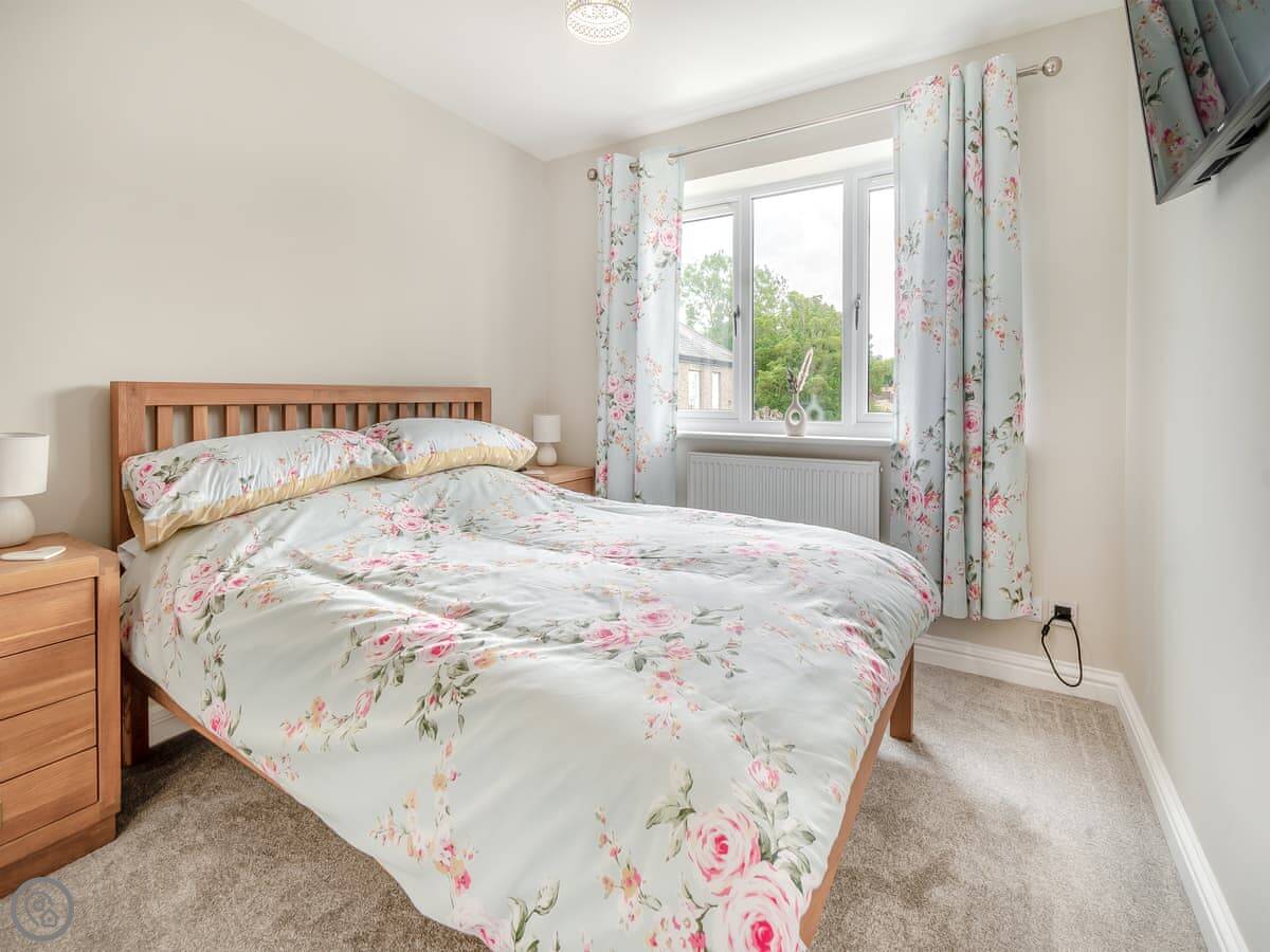 The ground floor offers open plan living that is spacious and airy. The living area provides a large L shaped sofa and an armchair. A Smart TV with Netflix will provide your entertainment whilst an electric woodburning stove will provide a warming ambience during the cooler winter months. A wide archway leads through to the kitchen/dining area. The deep blue kitchen offers a host of modern appliances including a gas hob, electric oven, dishwasher, and a slow cooker. There is even a toastie machine for a quick lunchtime snack which can be enjoyed at the breakfast bar. There are long runs of work top space for preparing delicious home cooked meals which can be enjoyed at the farmhouse style table which sits close by. This room is flooded with natural light from the French doors which lead out into a sunroom. Here you will find additional seating as well as garden access. The ground floor accommodation is completed by a house shower room and toilet.