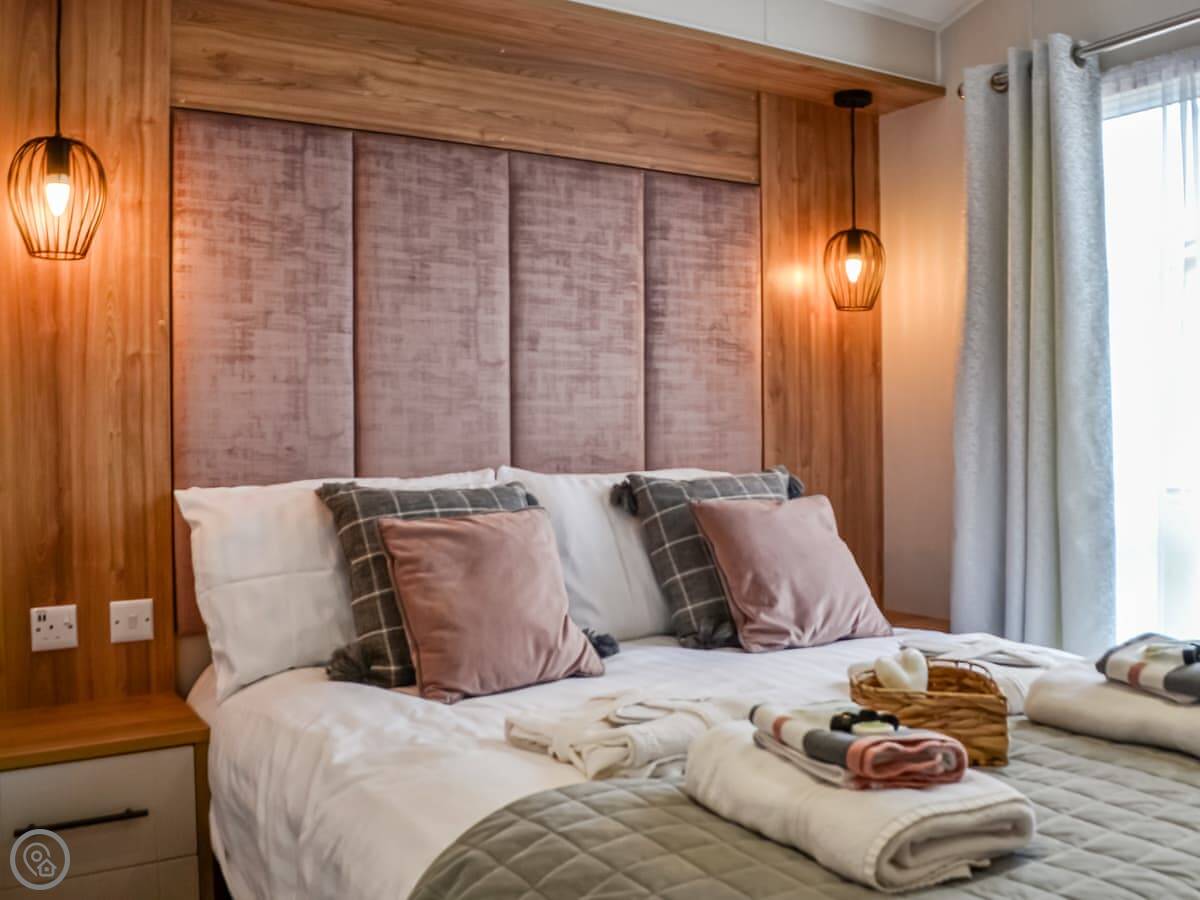 Inside, it's all open plan. There's a washing machine, dishwasher, and the bedding and towels are included. You park right next to the lodge. Sorry, no pets.