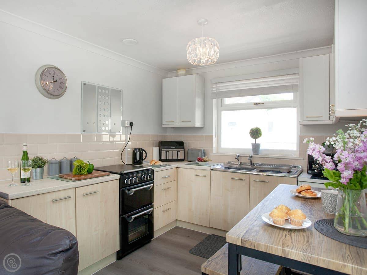 Inside, it’s got WiFi, a Smart TV, a washing machine, and a dishwasher. Bedding and towels are included. We can provide a cot and highchair if you need them. No pets, sorry.