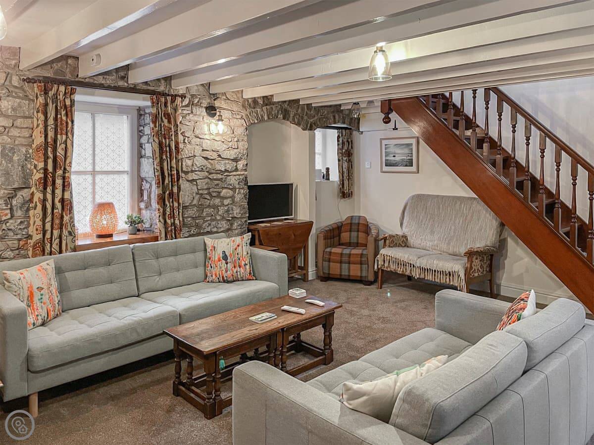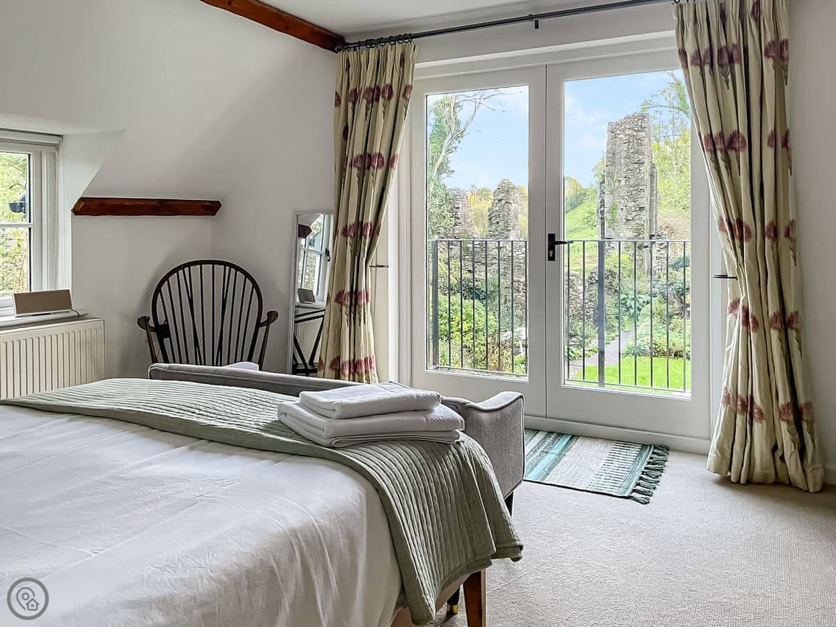 Priory Stile is in Haverfordwest. It’s a detached cottage, built in the 1700s. It looks right over the old priory ruins. The garden is enclosed and private, with different sections including lawns and a sunken bit. There’s a patio with a BBQ.