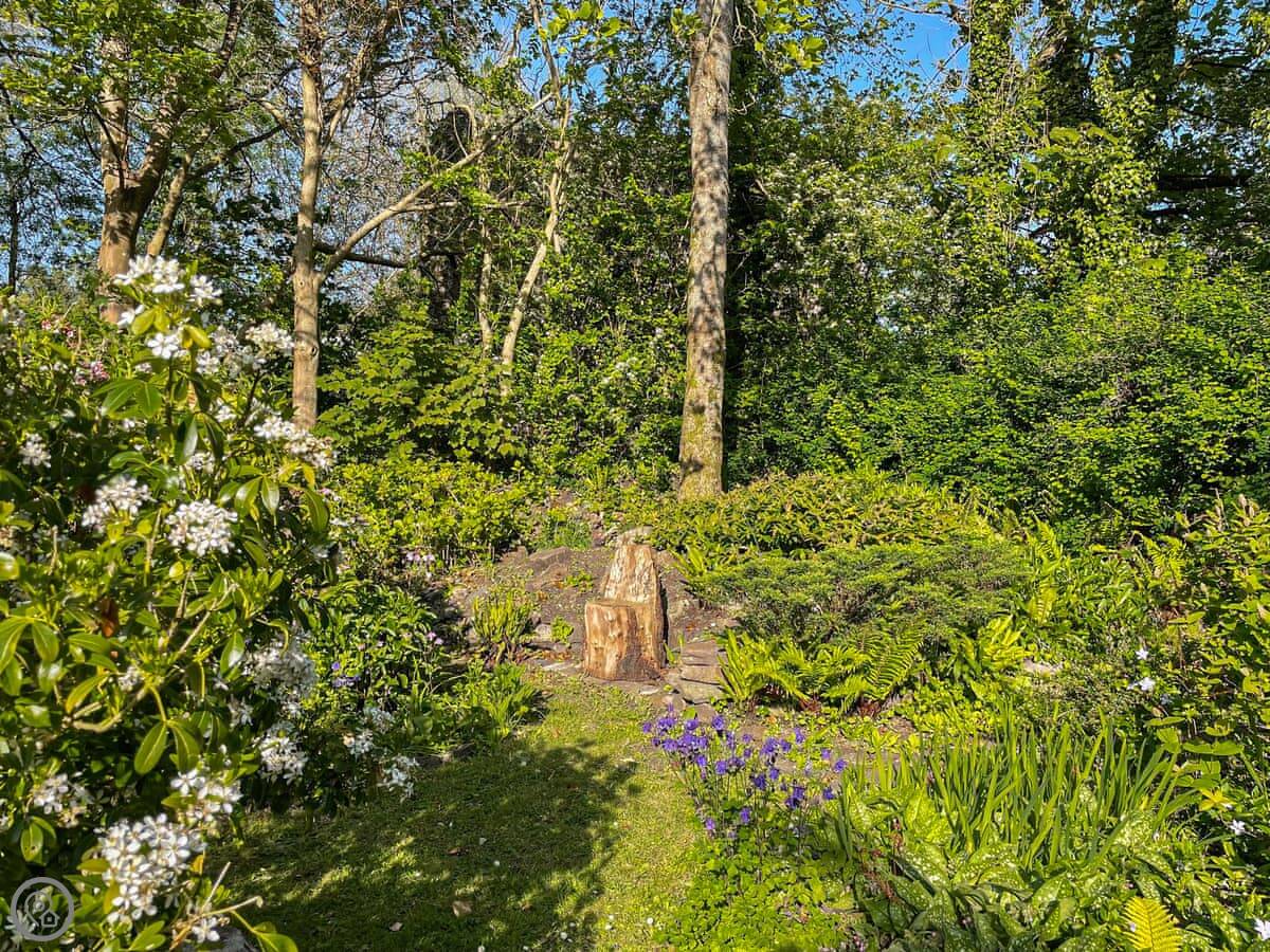 The garden has a pond with newts in it. There are steps and different levels, so small children need watching.