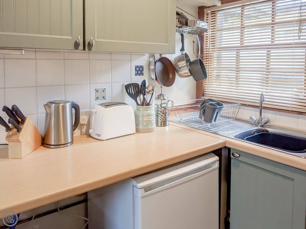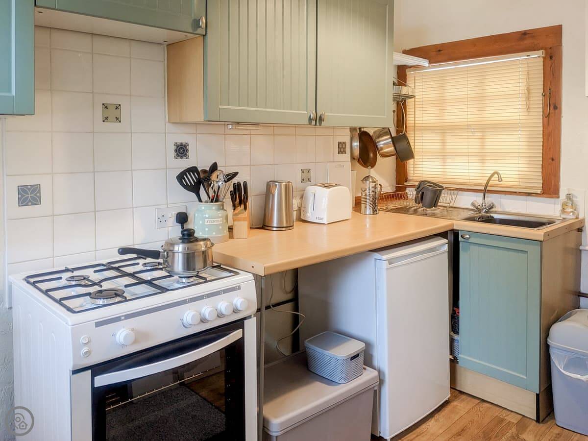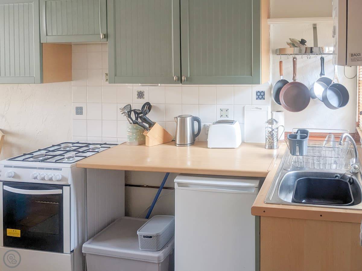 It sleeps four but there's only one proper bedroom. That's on the second floor with the bathroom, which has a shower over the bath. The living room is on the first floor and the sofa makes into a double bed. The kitchen is on the ground floor. It's a tall, thin house over three floors, so there are a lot of stairs.