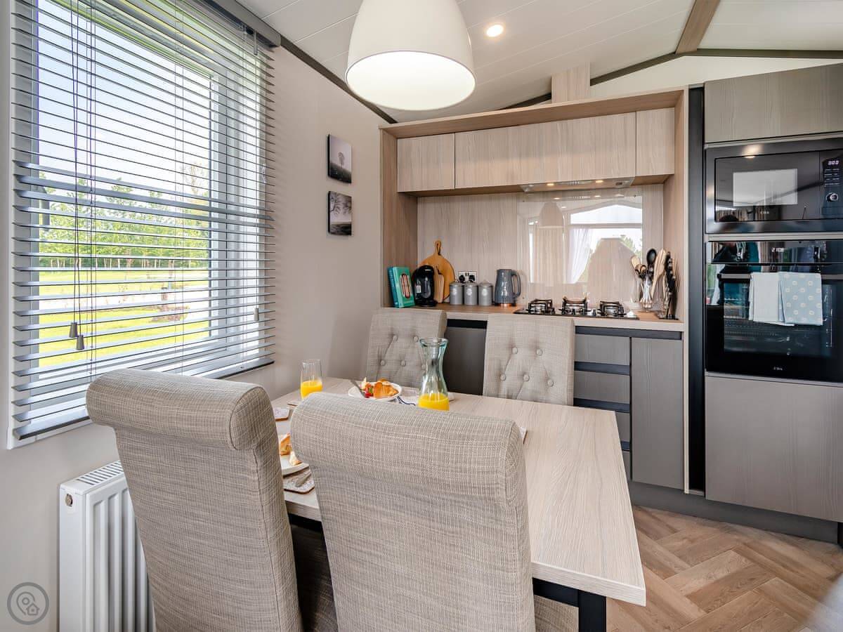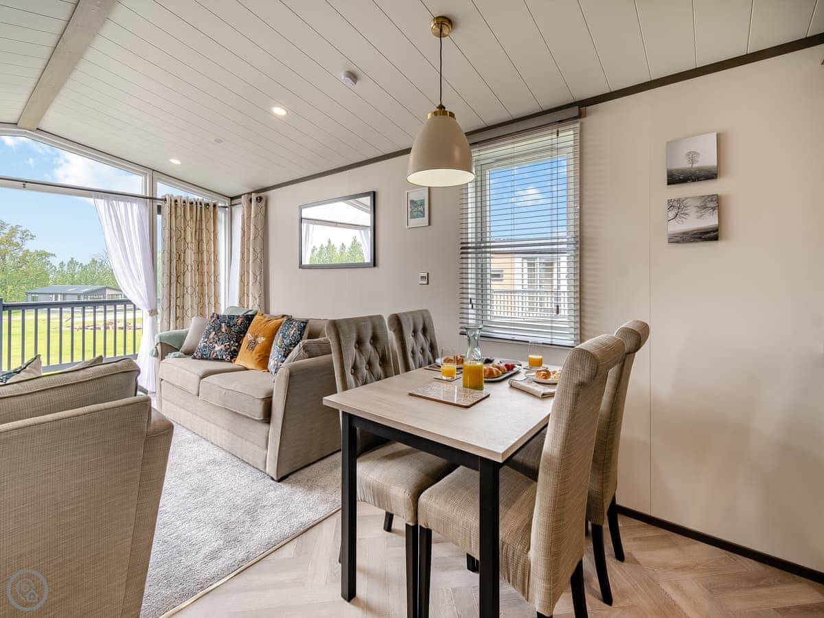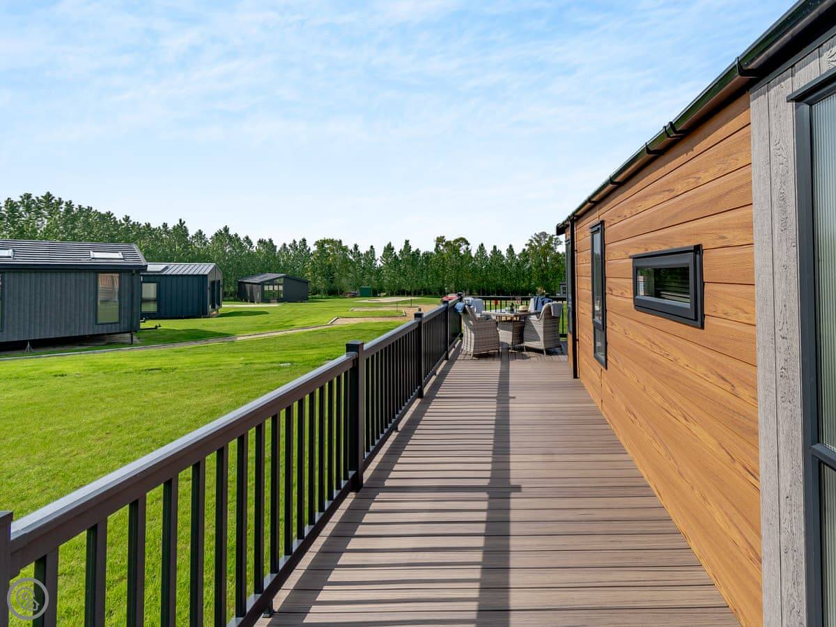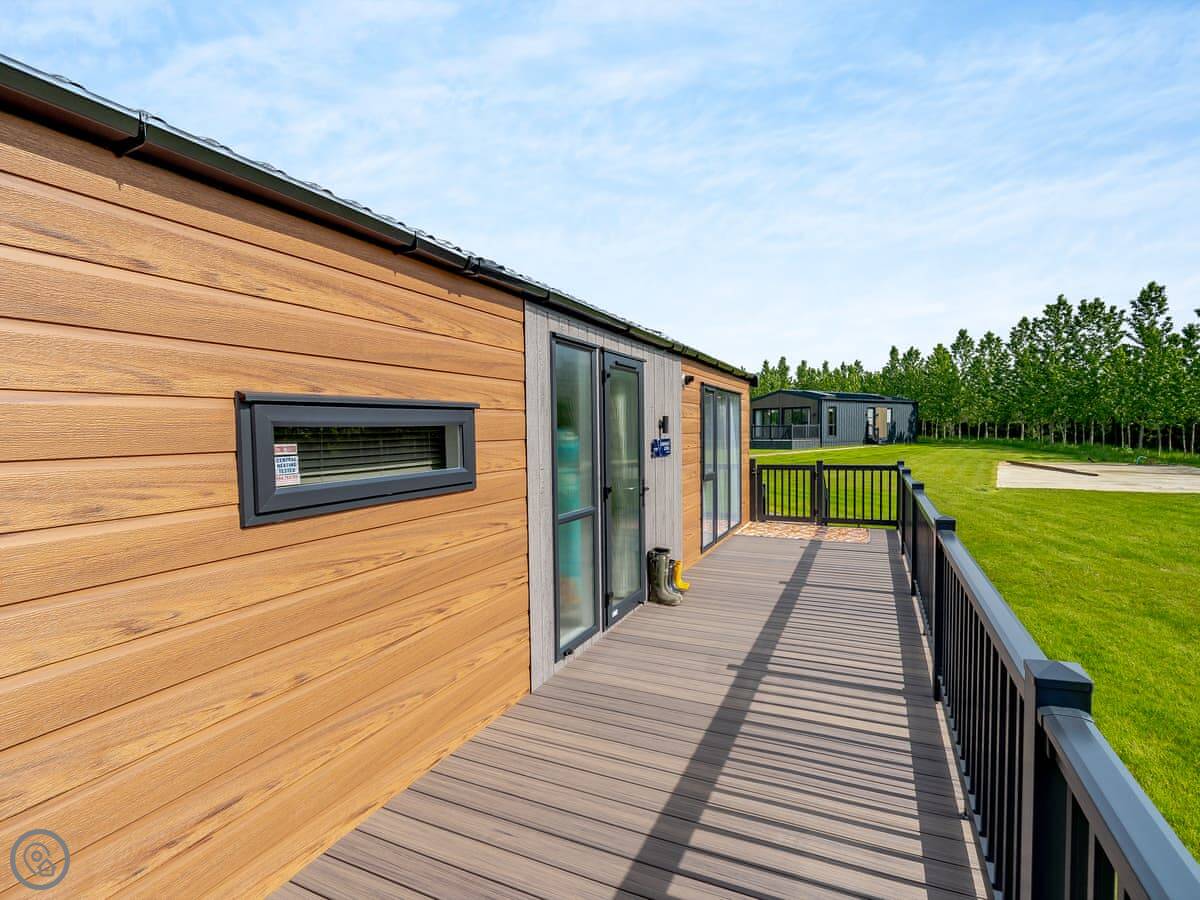 Pheasant Lodge is on a site called Keld Spring Lodge Retreat, just outside Helmsley. It's a modern timber lodge. Sleeps four in two bedrooms. It's got a 4 Star rating, which means it's well-finished and comfortable.
