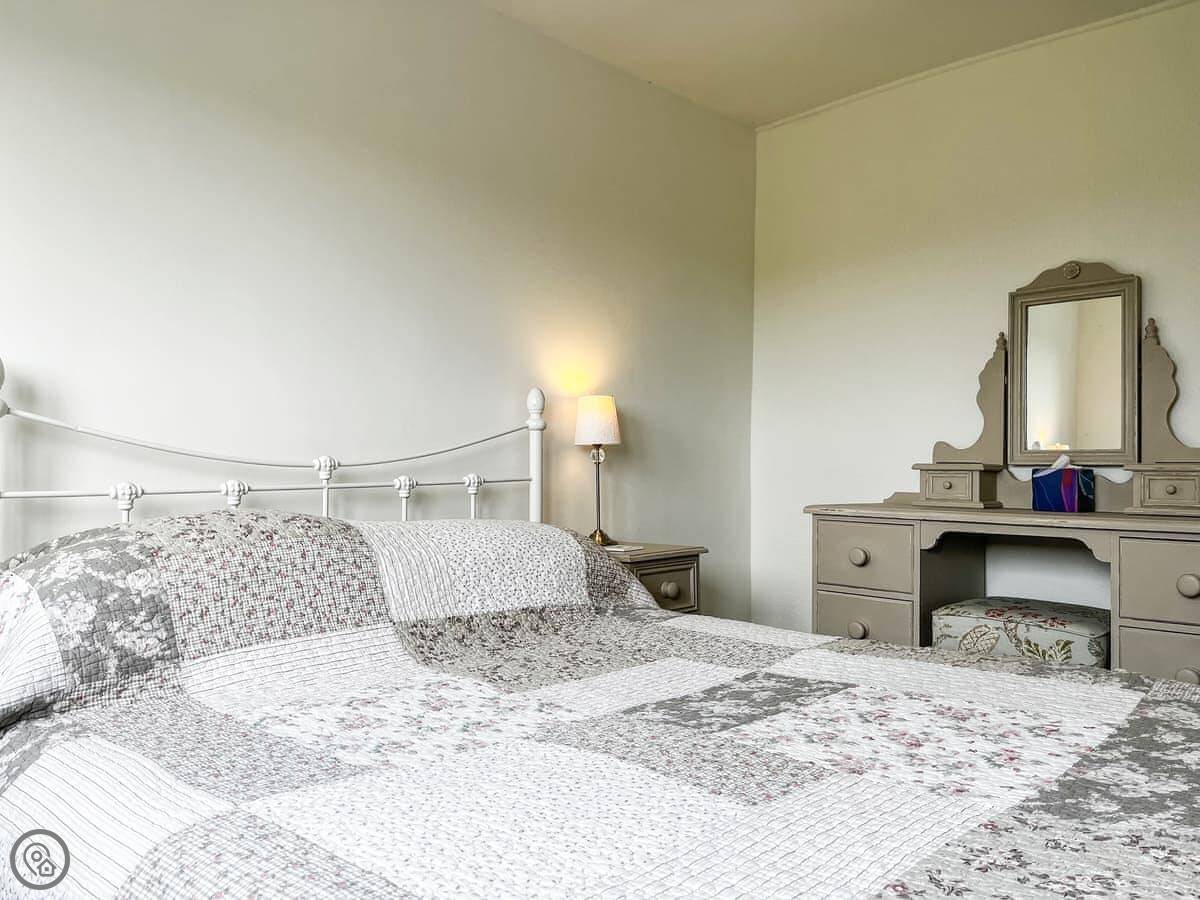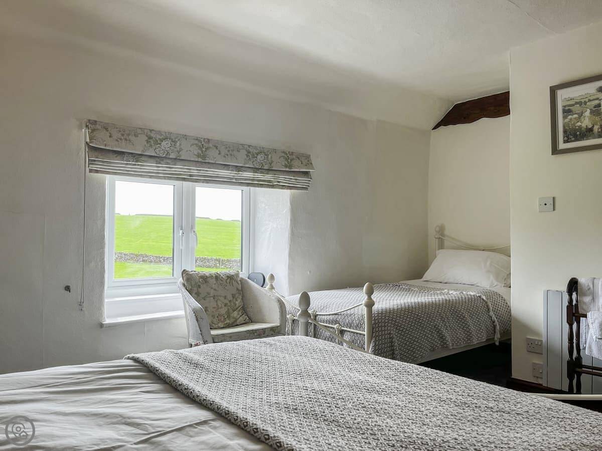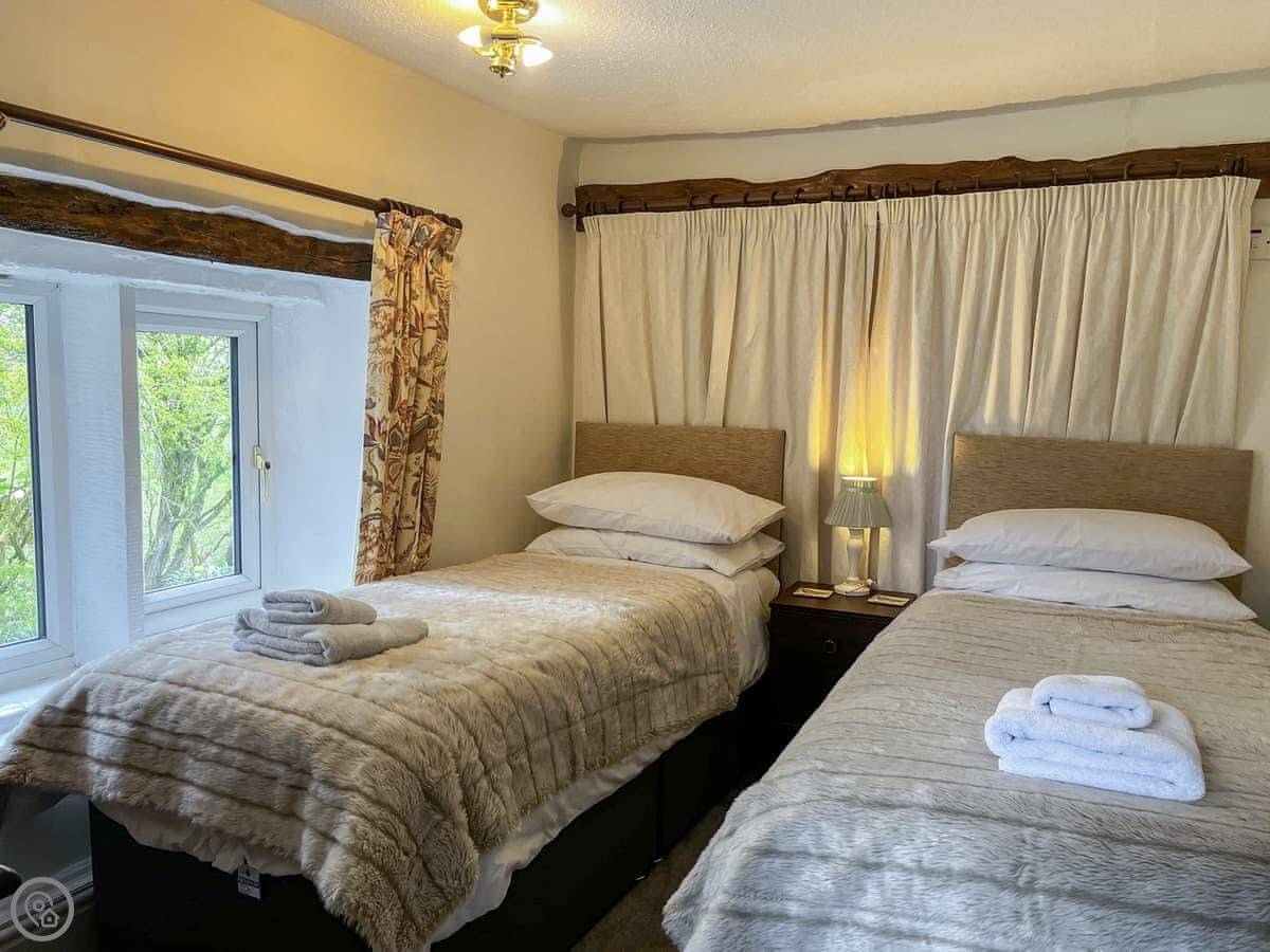 It sleeps seven across three bedrooms. There's a double, a twin, and the third room has a double and a single bed. So it works for a bigger group. You get two bathrooms, one of which is a shower room downstairs.