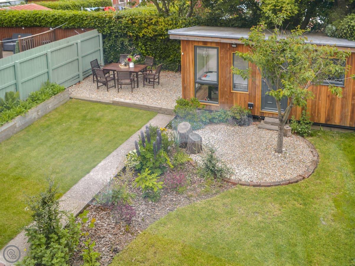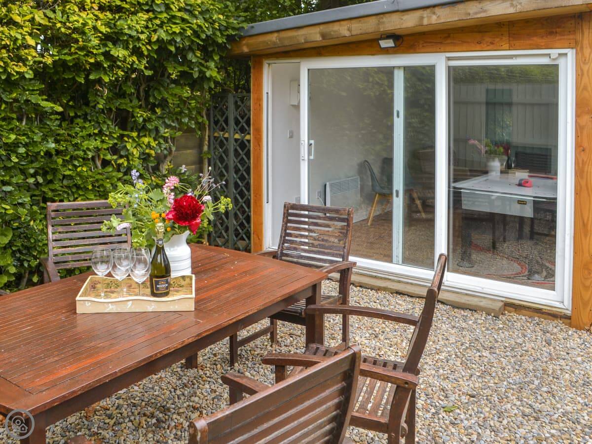 The garden is private and enclosed, which is good if you've got dogs or kids. It gets the sun in the morning and evening. There's a separate games room at the bottom of the garden with a TV and an air hockey table. It's useful if the weather turns.