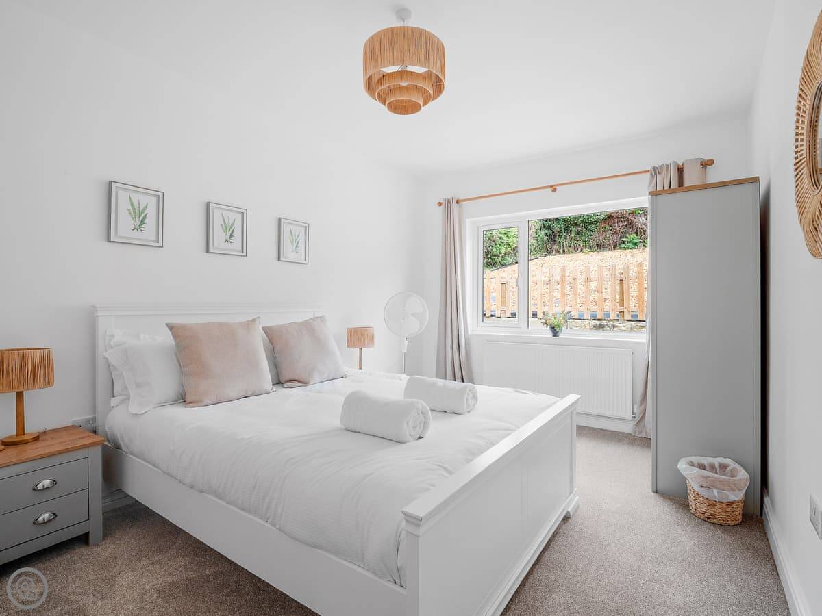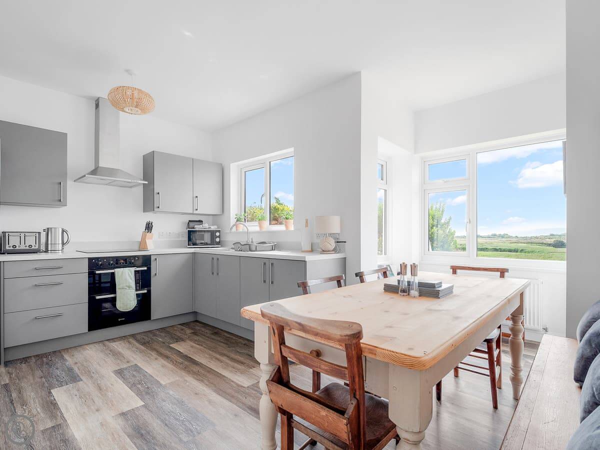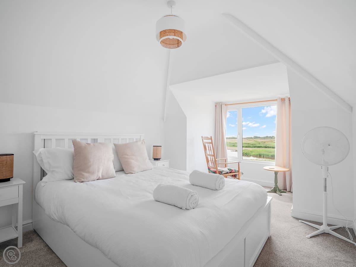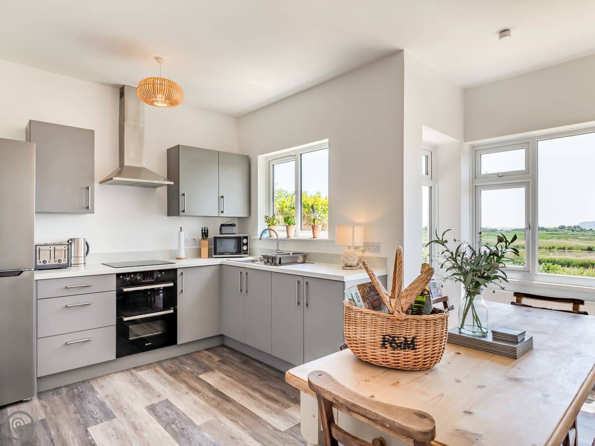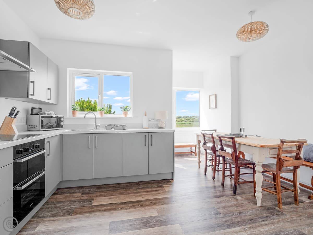 Inside on the ground floor, you will find the spacious kitchen/dining room, very well equipped with everything you could need during your stay. The dining area has a wonderful large table that enjoys the stunning views and is perfect for long leisurely meals or an evening of games. The living room has a large Smart TV and comfy sofas, perfect to snuggle in and watch your favourite box set or just have glass of wine and marvel at the views. You will also find two kingsize bedrooms and a twin, as well as the family bathroom on this floor. Heading upstairs you have a master kingsize bedroom with panoramic sea and nature views from the picture window, have a seat in the chair with your morning cuppa, it’s the ideal way to wake up on holiday! Outside, the gorgeous garden has a wonderful eight-person hot tub and fabulous outdoor dining set for enjoying barbecue’s, brunches or breakfast in the sunshine. The lawned area is great for sunbathing or playing games.